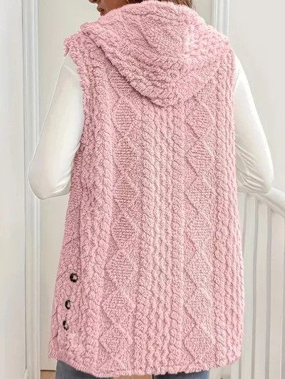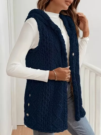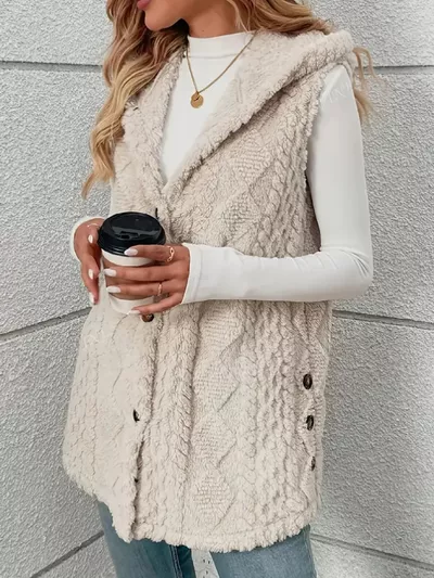 Double Take Full Size Snap Down Plaid Fleece Vest Coat with Pockets