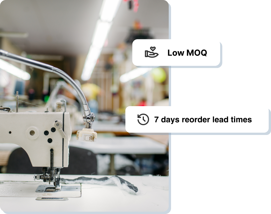 Through our trusted network of manufacturers, we offer a MOQ as low as 60 pieces. With our agile production, reorder lead times only takes 7 business days.