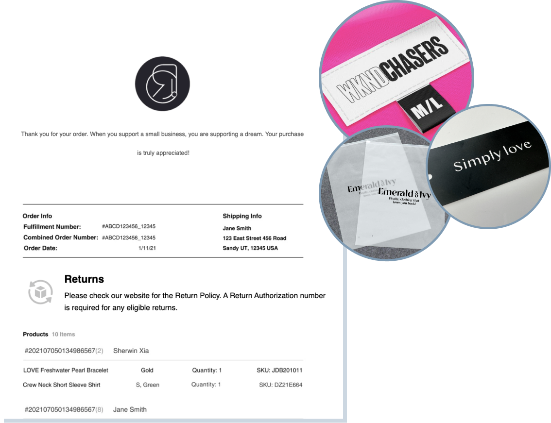Enhance your brand with Private Labeling. By adding your brand name and logo to hang tags and sewn in labels, you can take your business to the next level and set your brand apart from the rest.