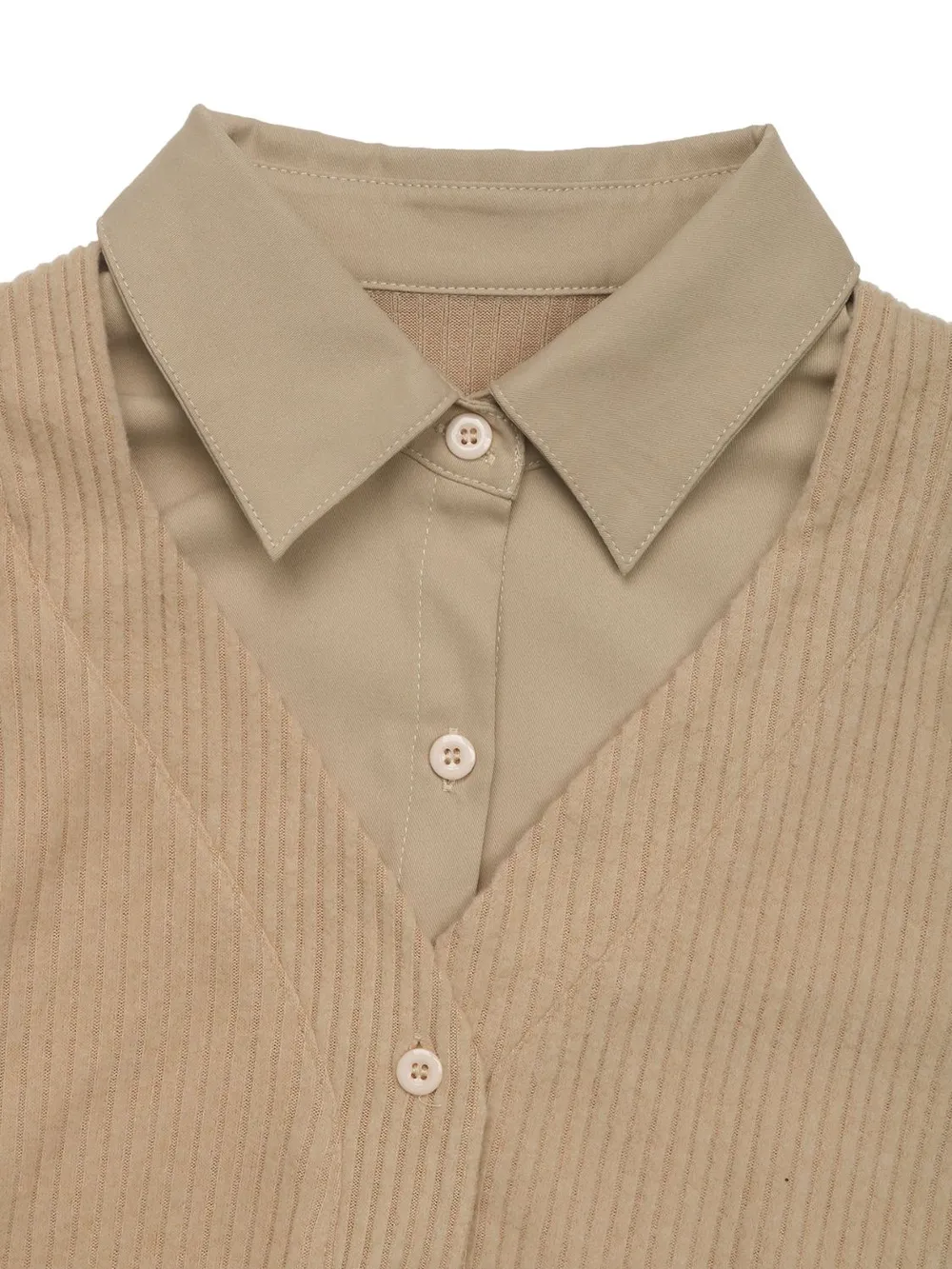 Perfee Fake Two Piece Collared Neck Long Sleeve Midi Dress