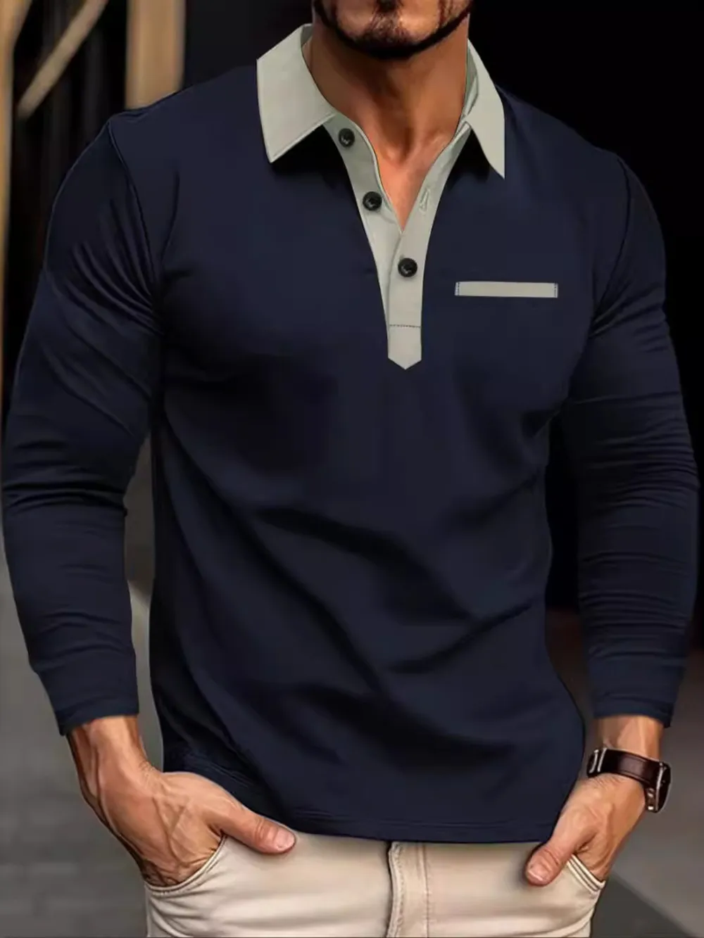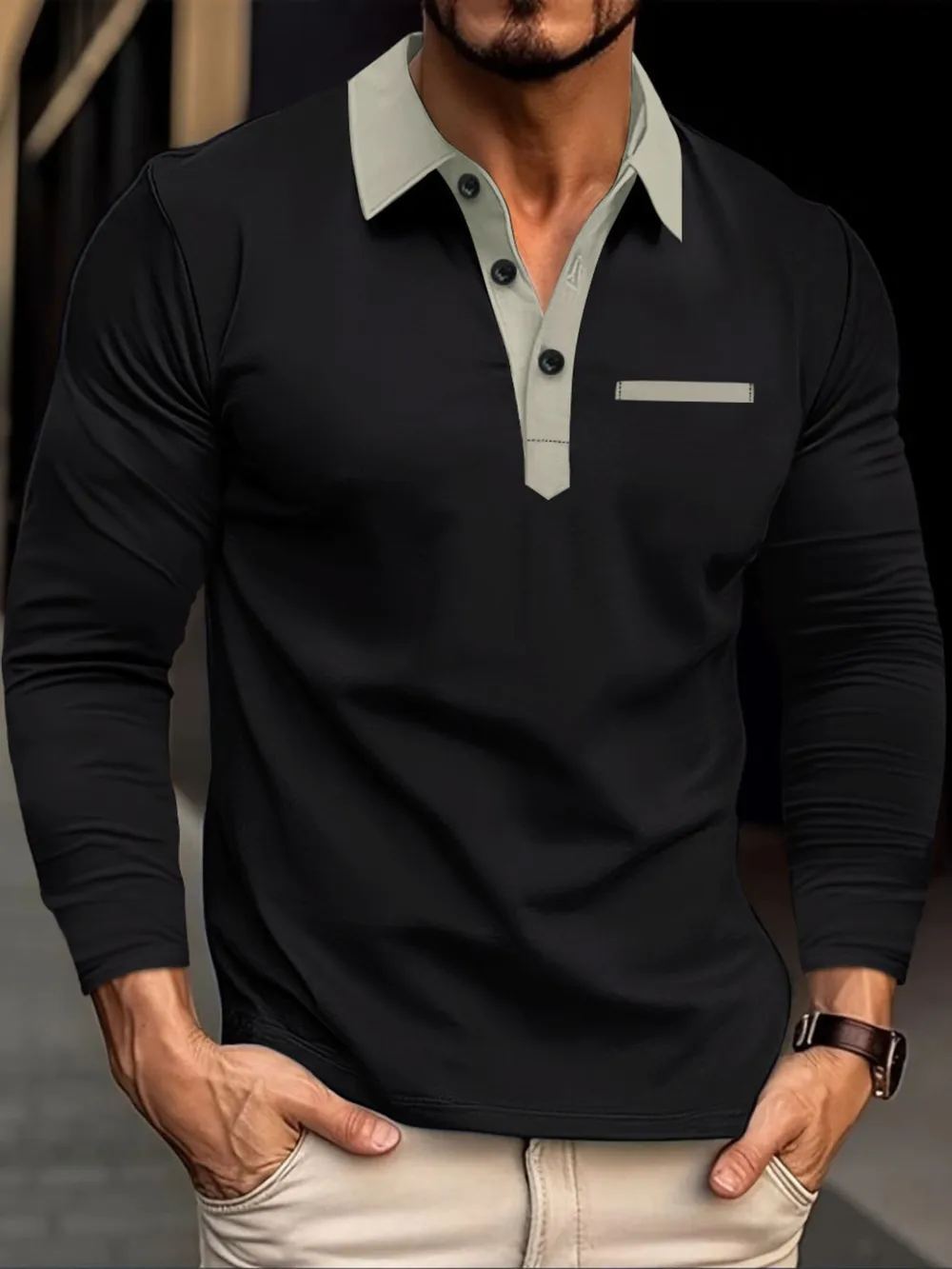 Men's Full Size Long Sleeve Contrast Collar Polo Shirt Plus Size
