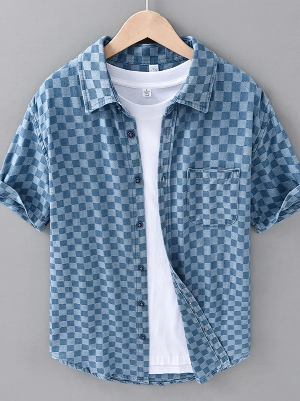 Men's Plus Size Checkered Pattern Short Sleeve Casual Shirt