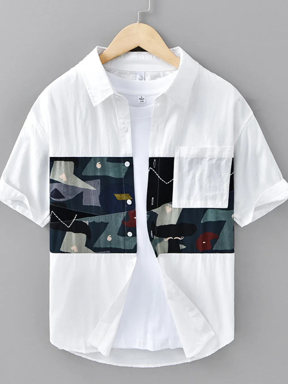 Men's Plus Size Abstract Patchwork Short Sleeve Shirt