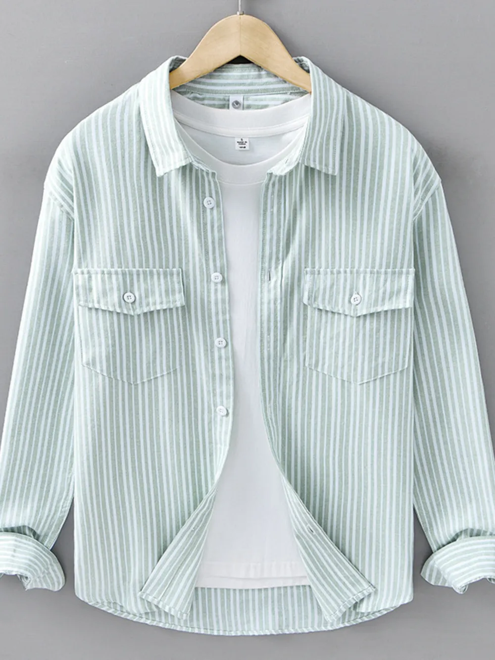 Men's Plus Size Striped Casual Long Sleeve Shirt