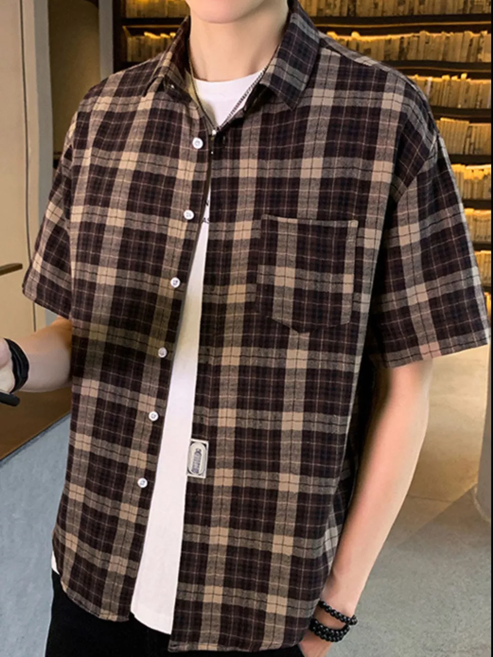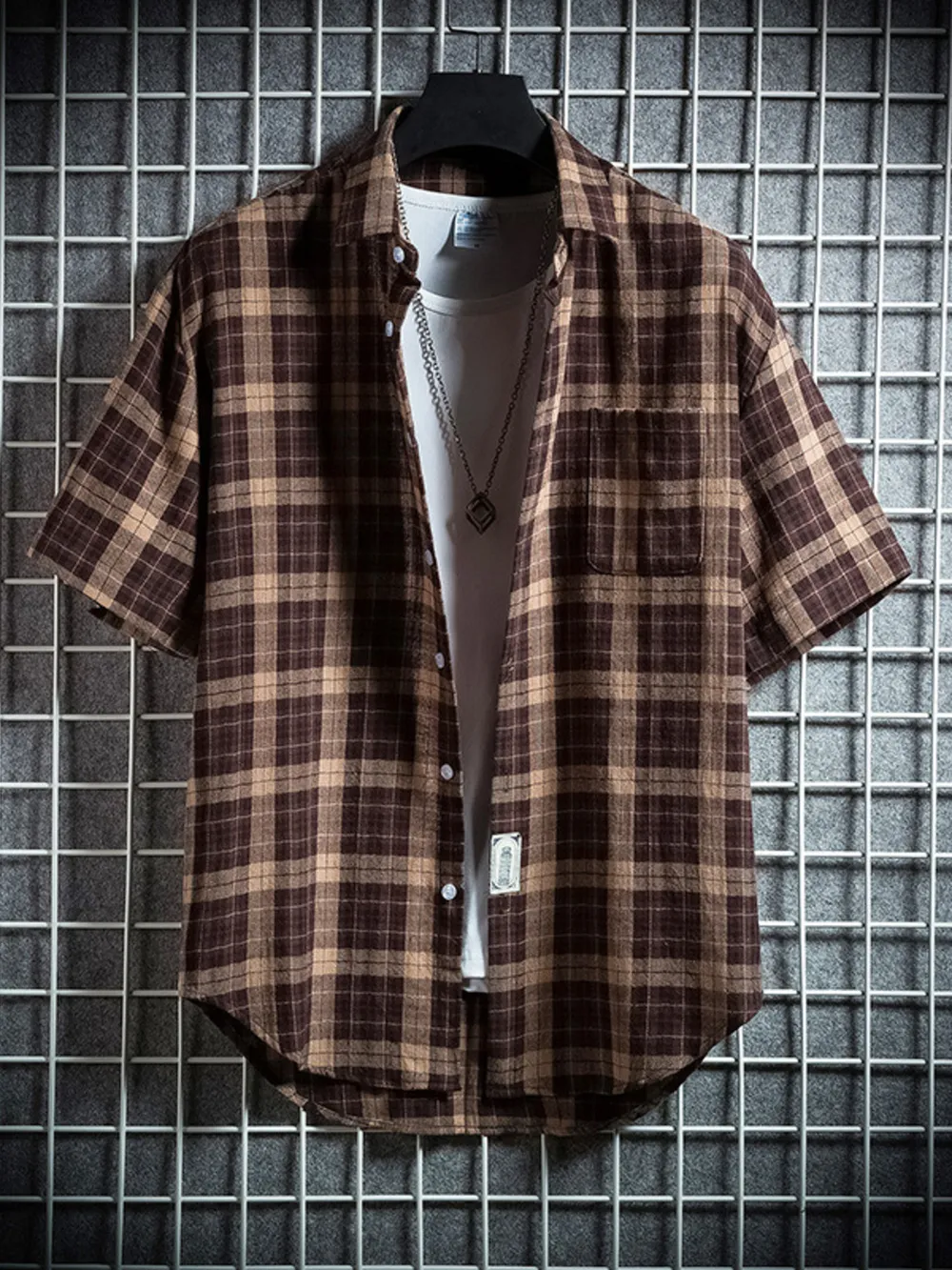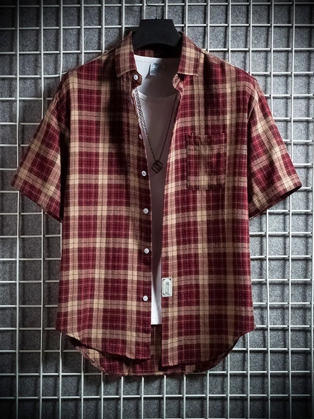 Men's Plus Size Casual Plaid Short Sleeve Shirt
