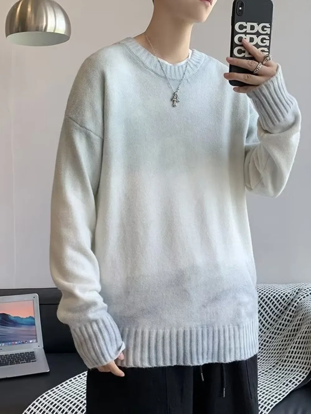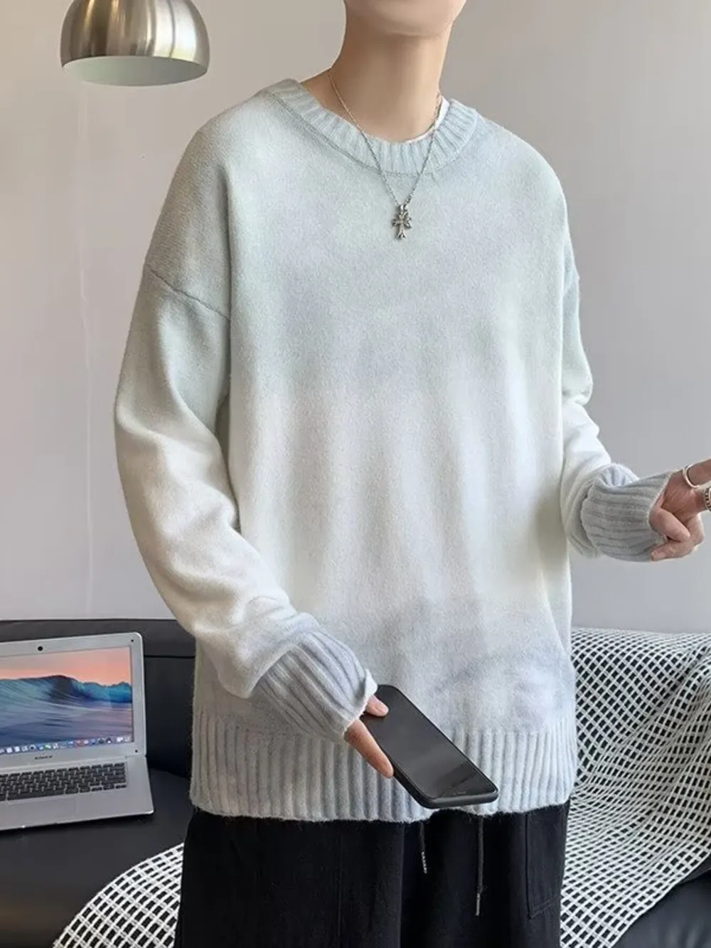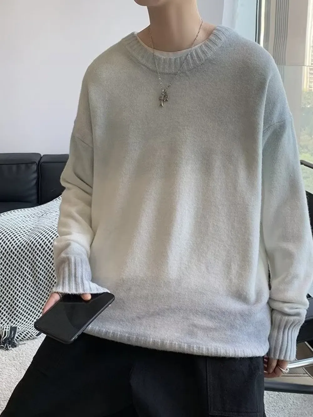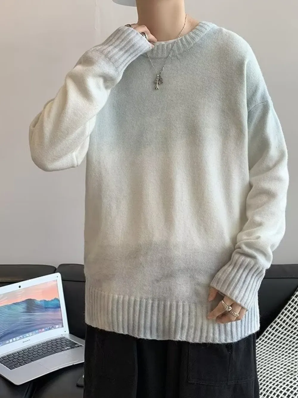 Men's Gradient Long Sleeve Knitted Sweater