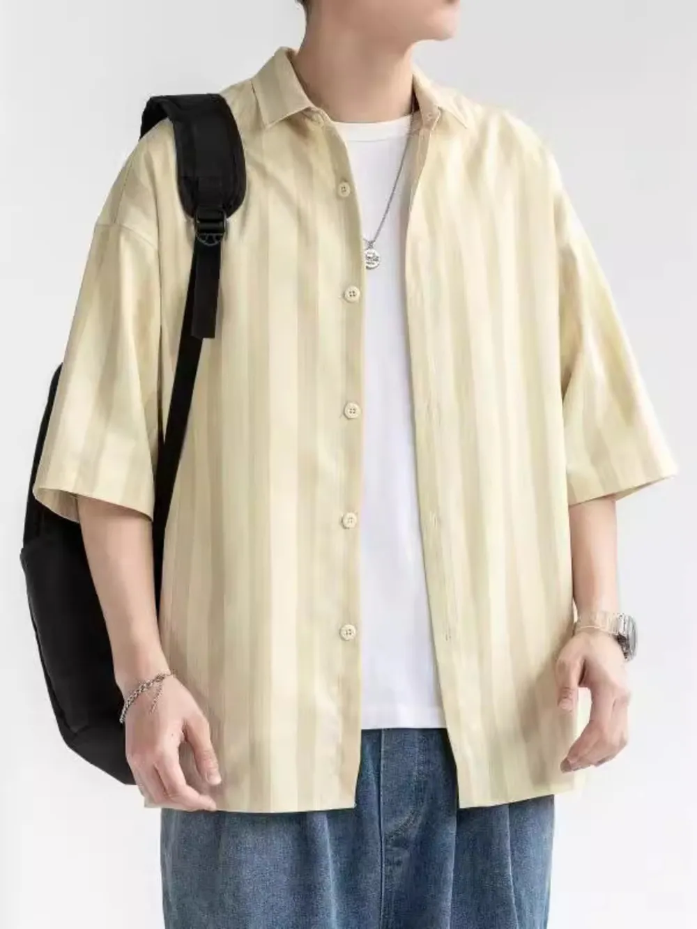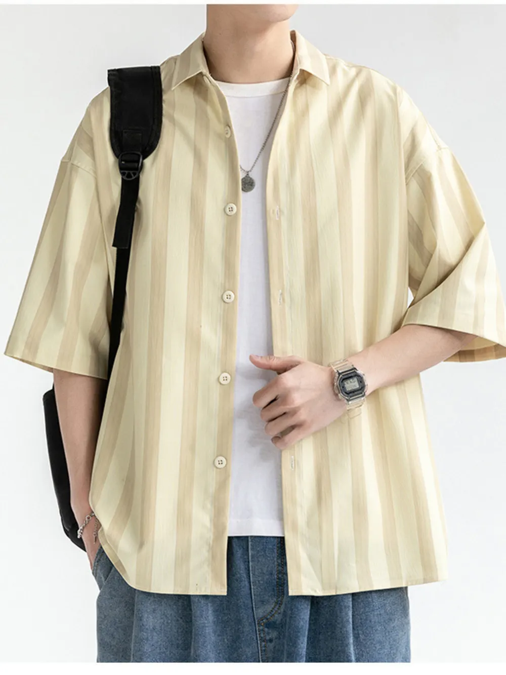 Men's Plus Size Striped Loose Fit Short Sleeve Shirt
