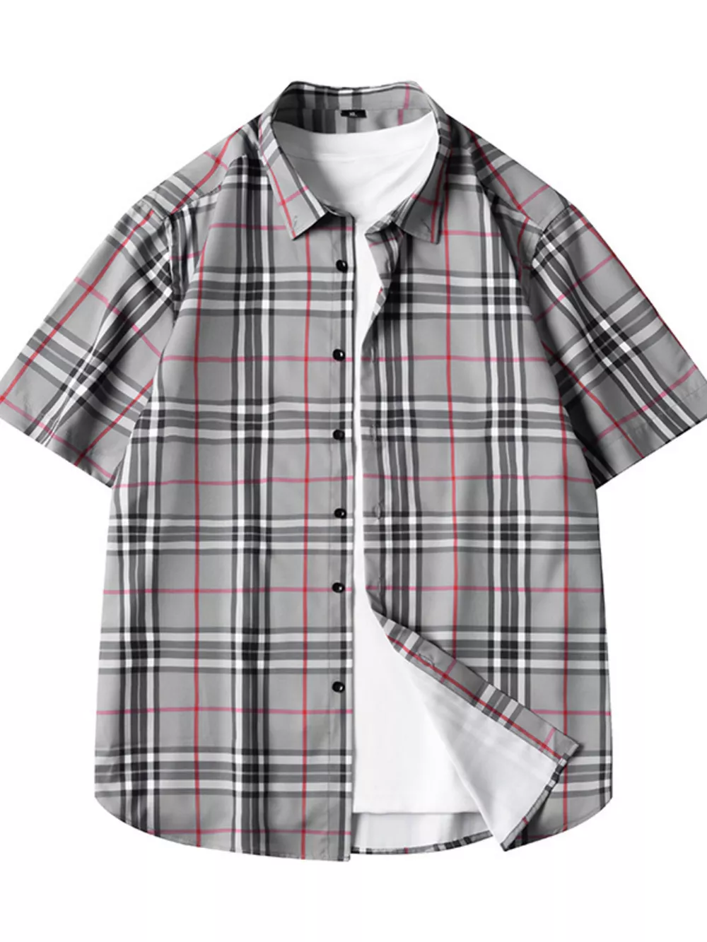 Men's Plus Size Classic Plaid Short Sleeve Shirt