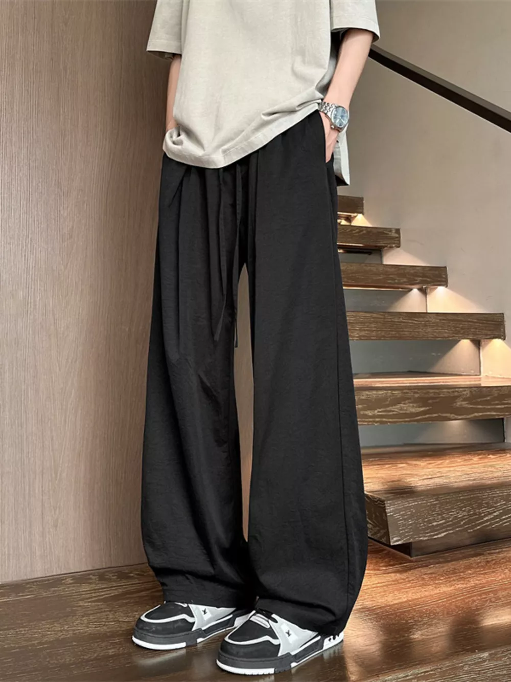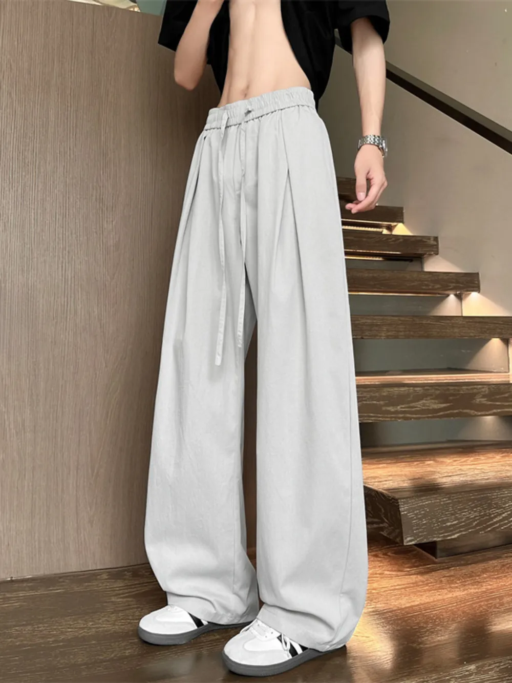 Men's Full Size Wide Leg Pleated Drawstring Casual Pants Plus Size