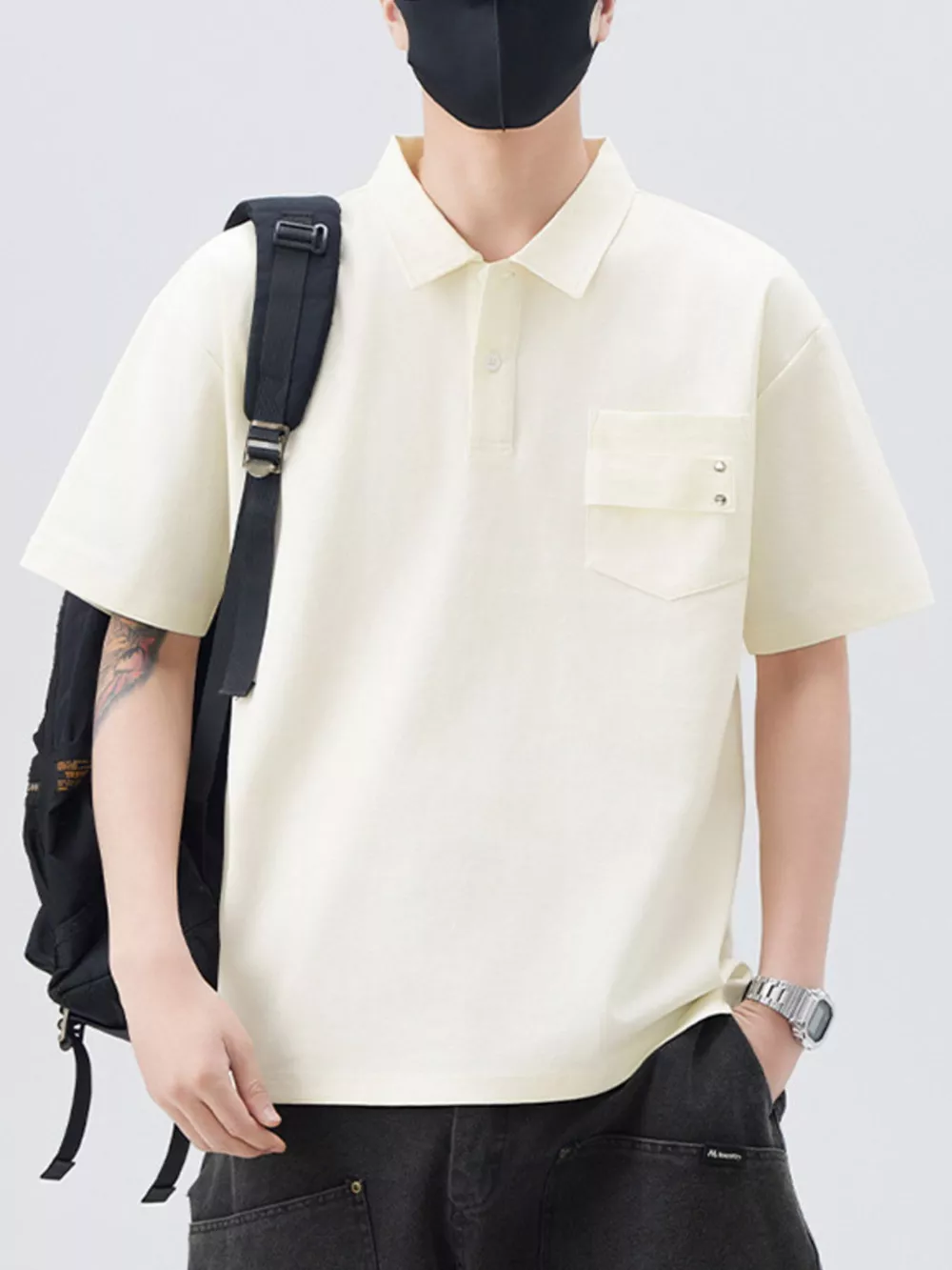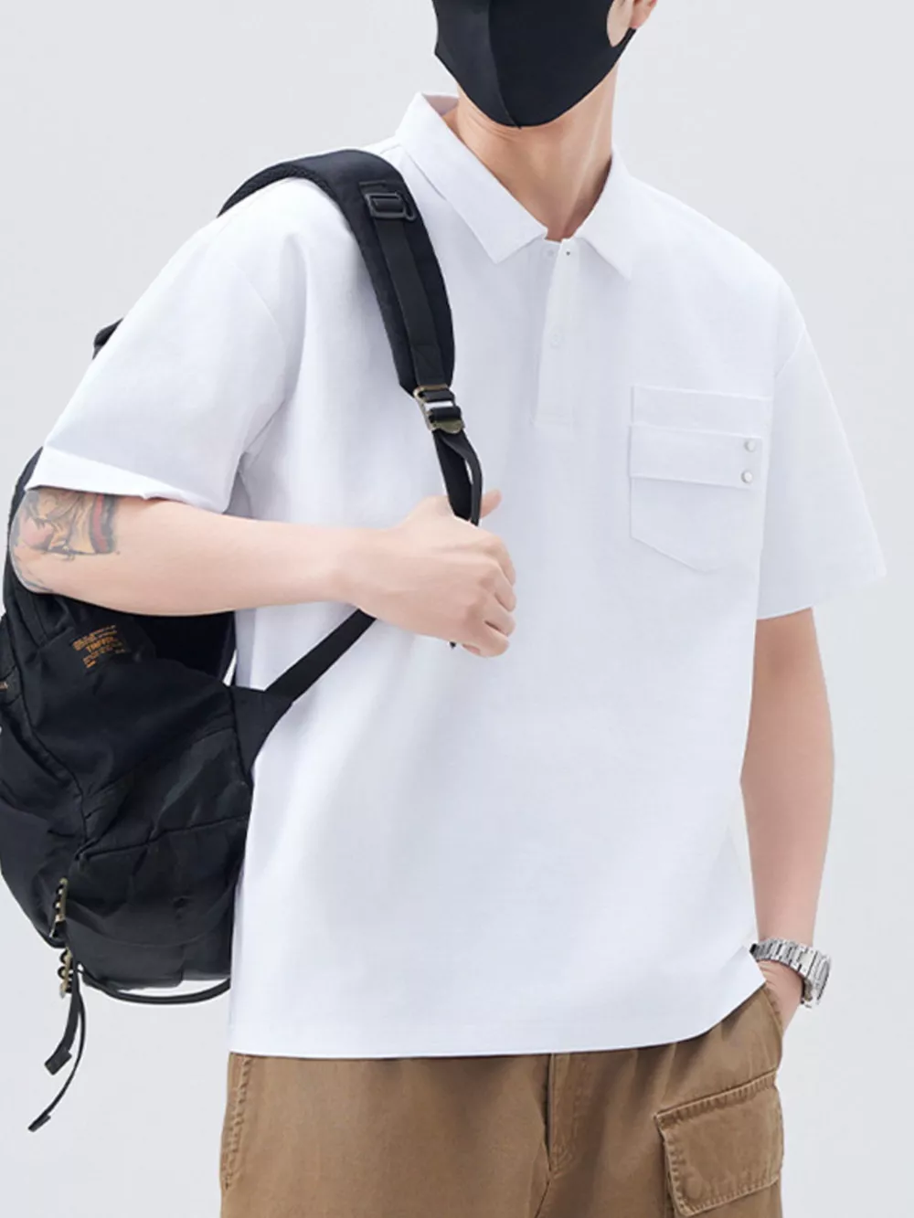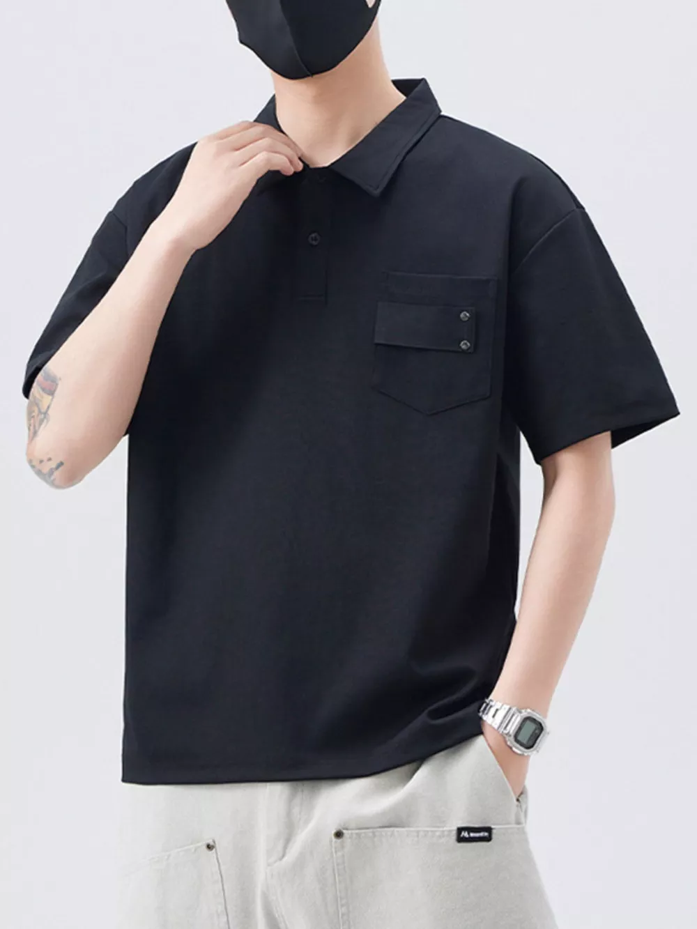 Men's Plus Size Short Sleeve Polo Shirt with Chest Pockets