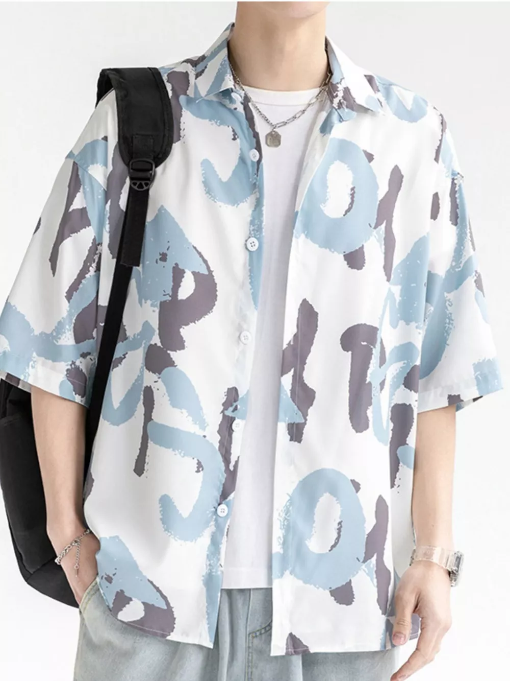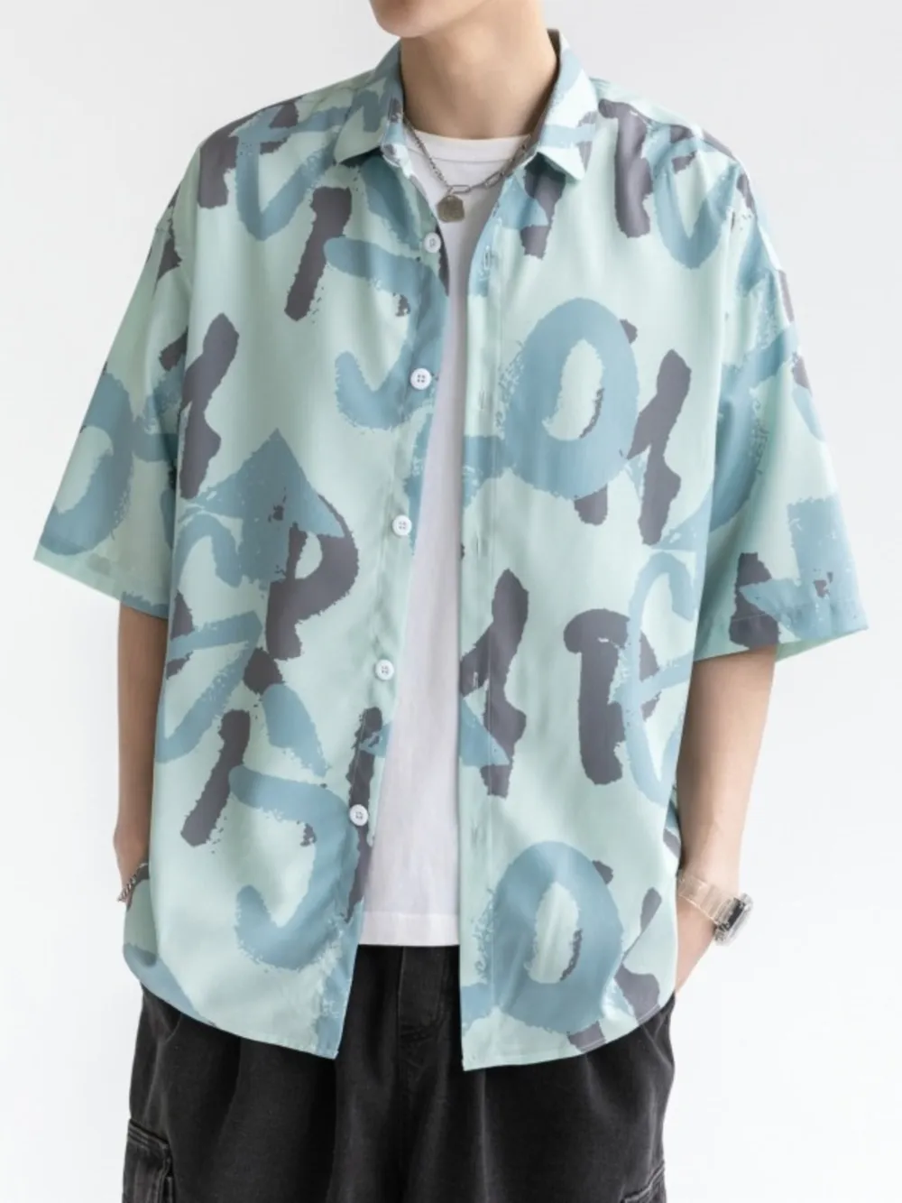 Men's Plus Size Abstract Print Short Sleeve Shirt