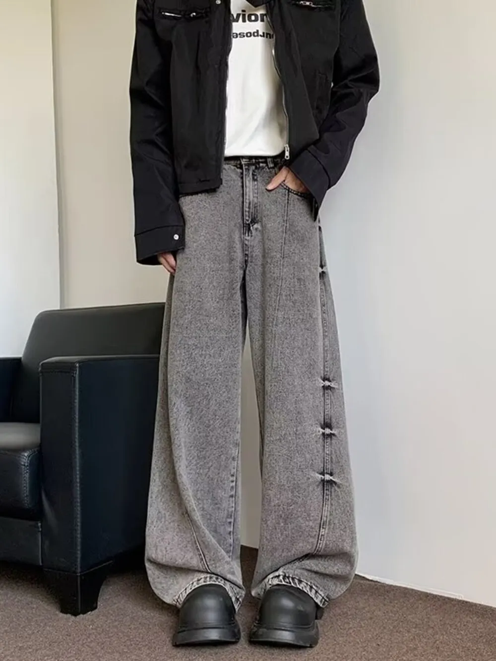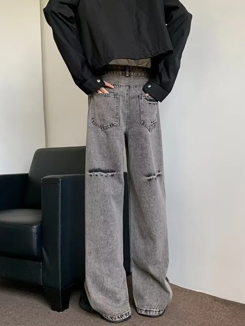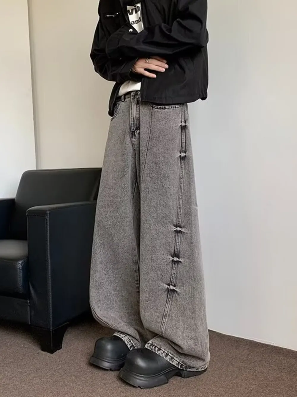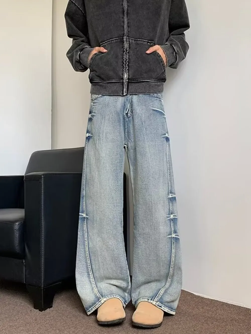 Men's Full Size Wash Wide Leg Jeans Plus Size