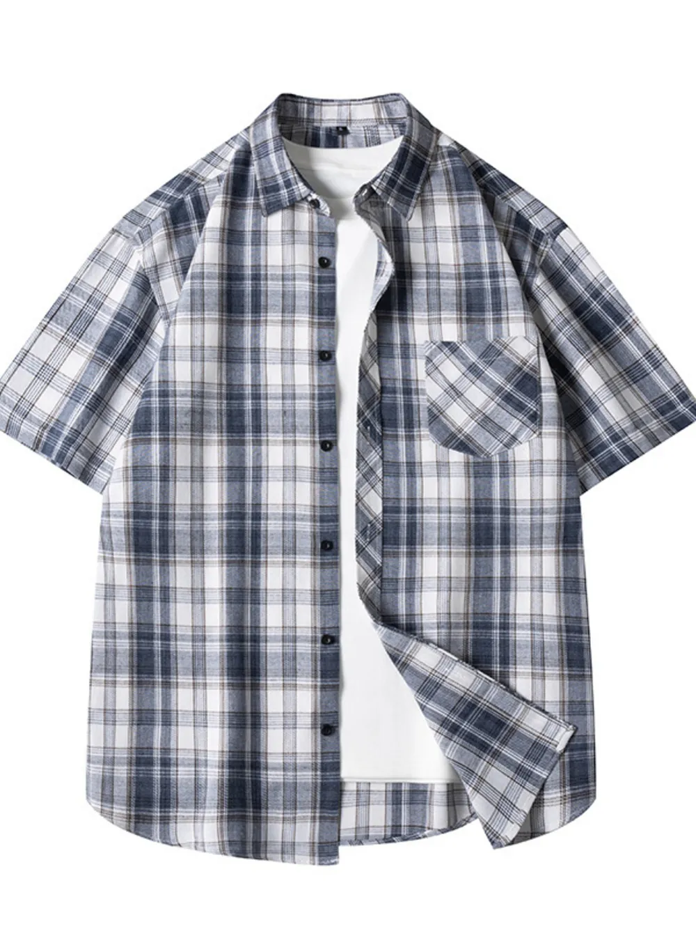 Men's Plus Size Casual Plaid Short Sleeve Shirt