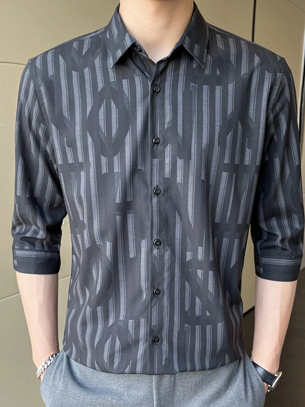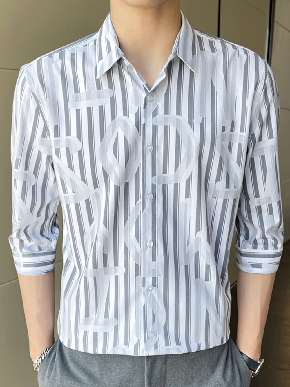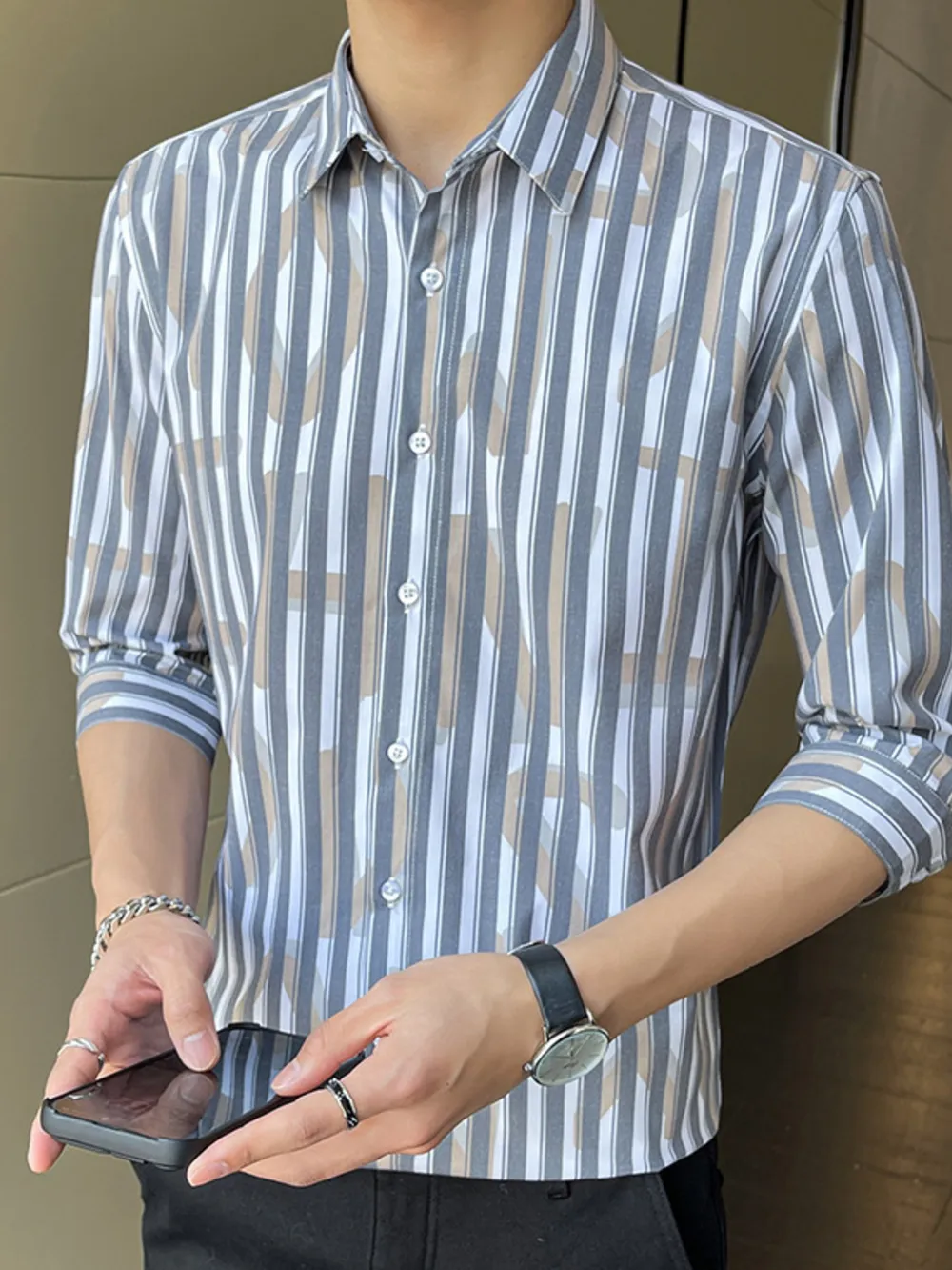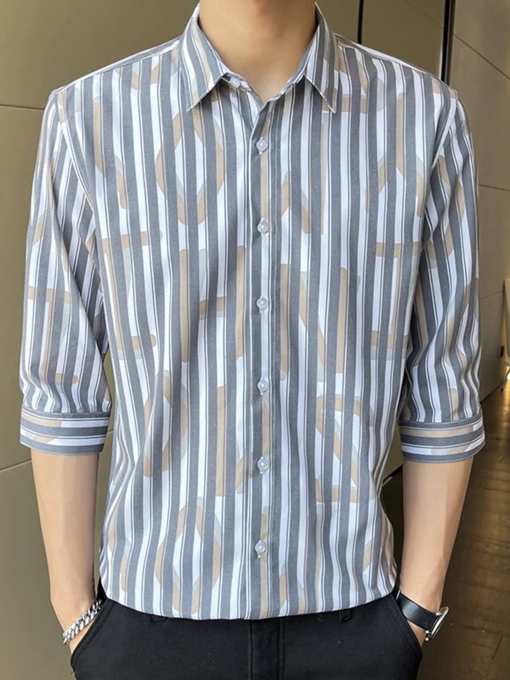 Men's Plus Size Striped Pattern Slim Fit Shirt