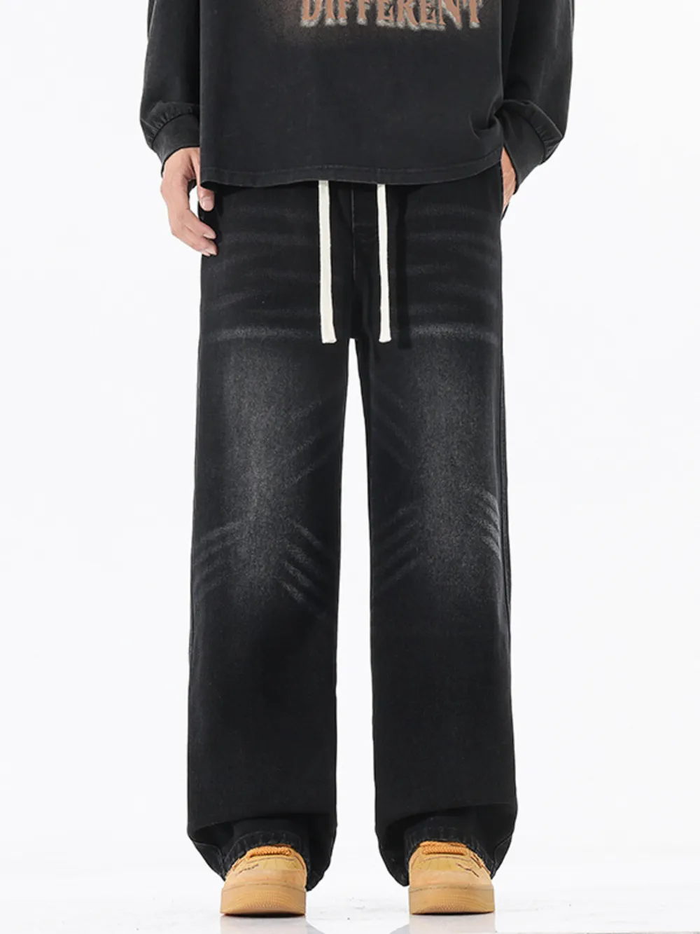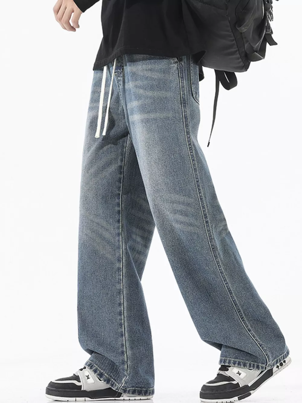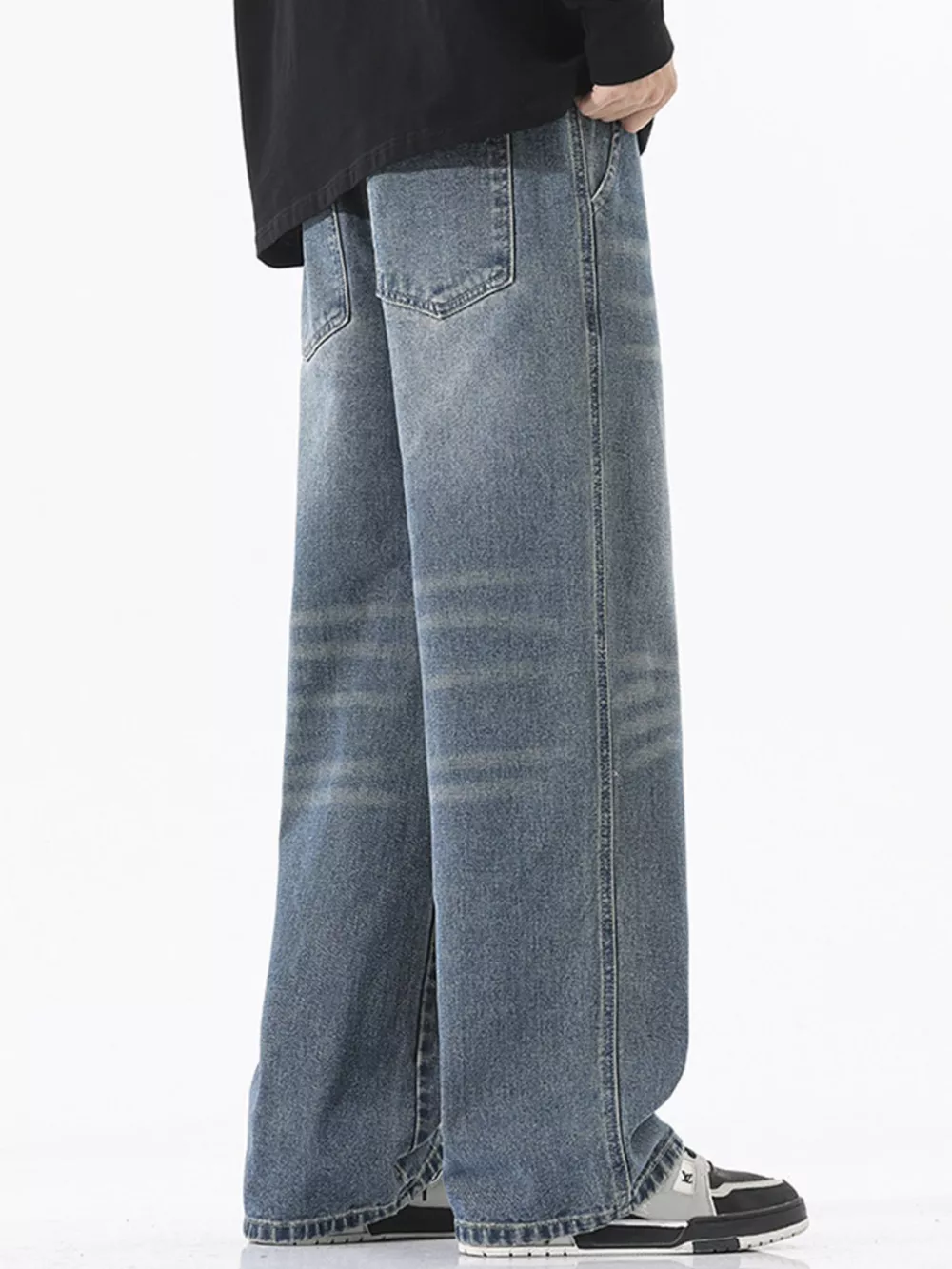 Men's Full Size Wash Wide Leg Jeans Plus Size