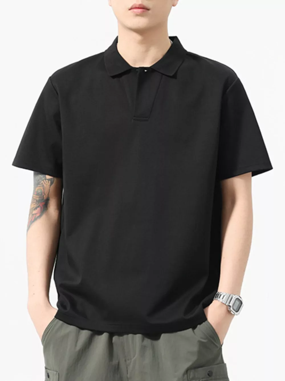 Men's Full Size Button Detail Short Sleeve Polo Plus Size