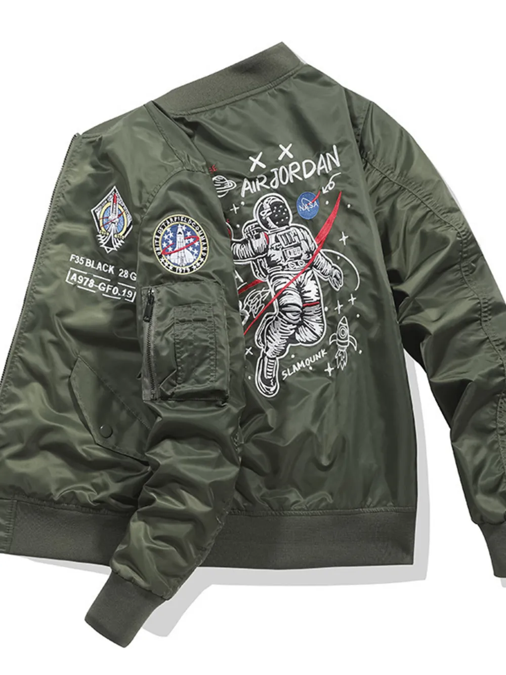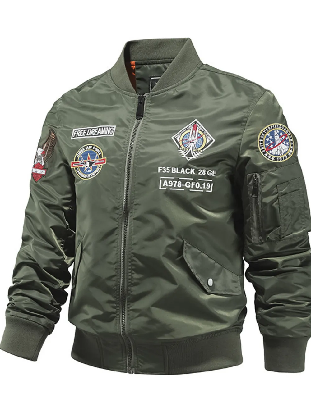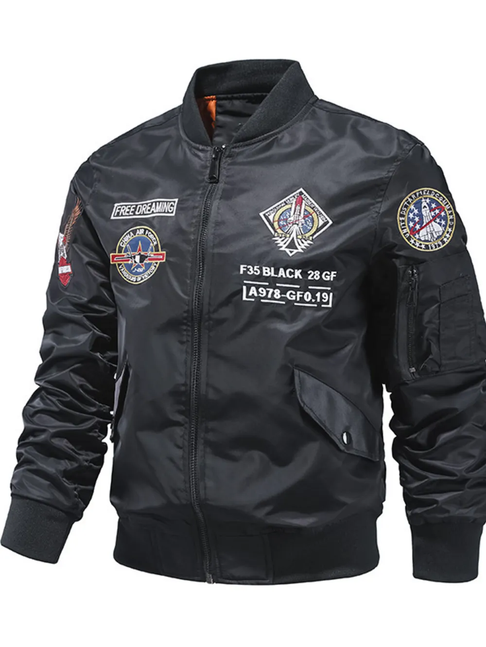 Men's Plus Size Embroidered Patches Zip Up Bomber Jacket