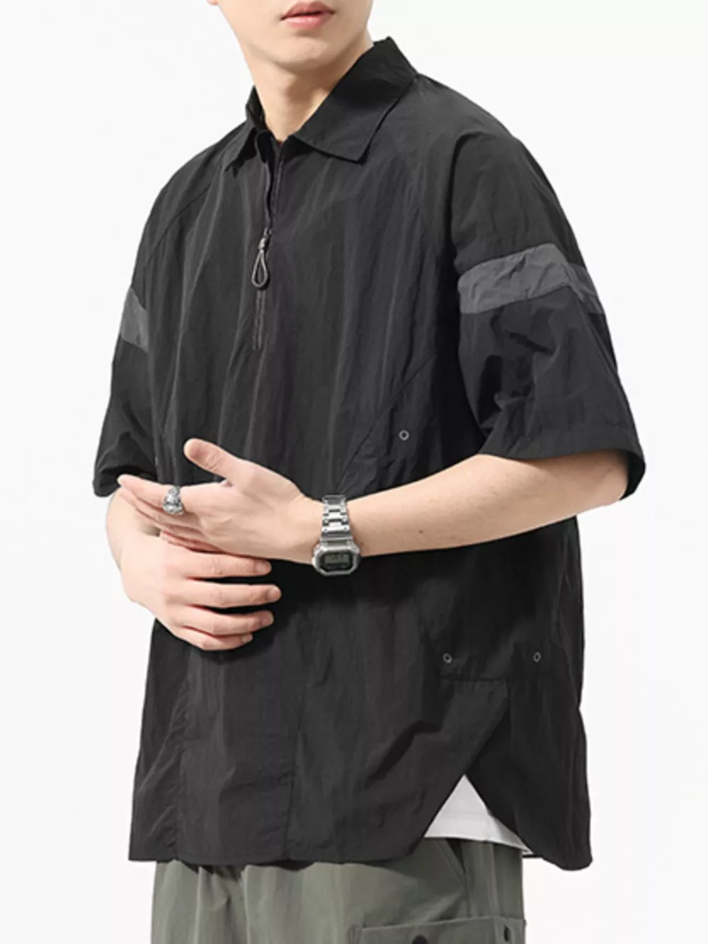 Men's Plus Size Quarter Zip Short Sleeve Polo