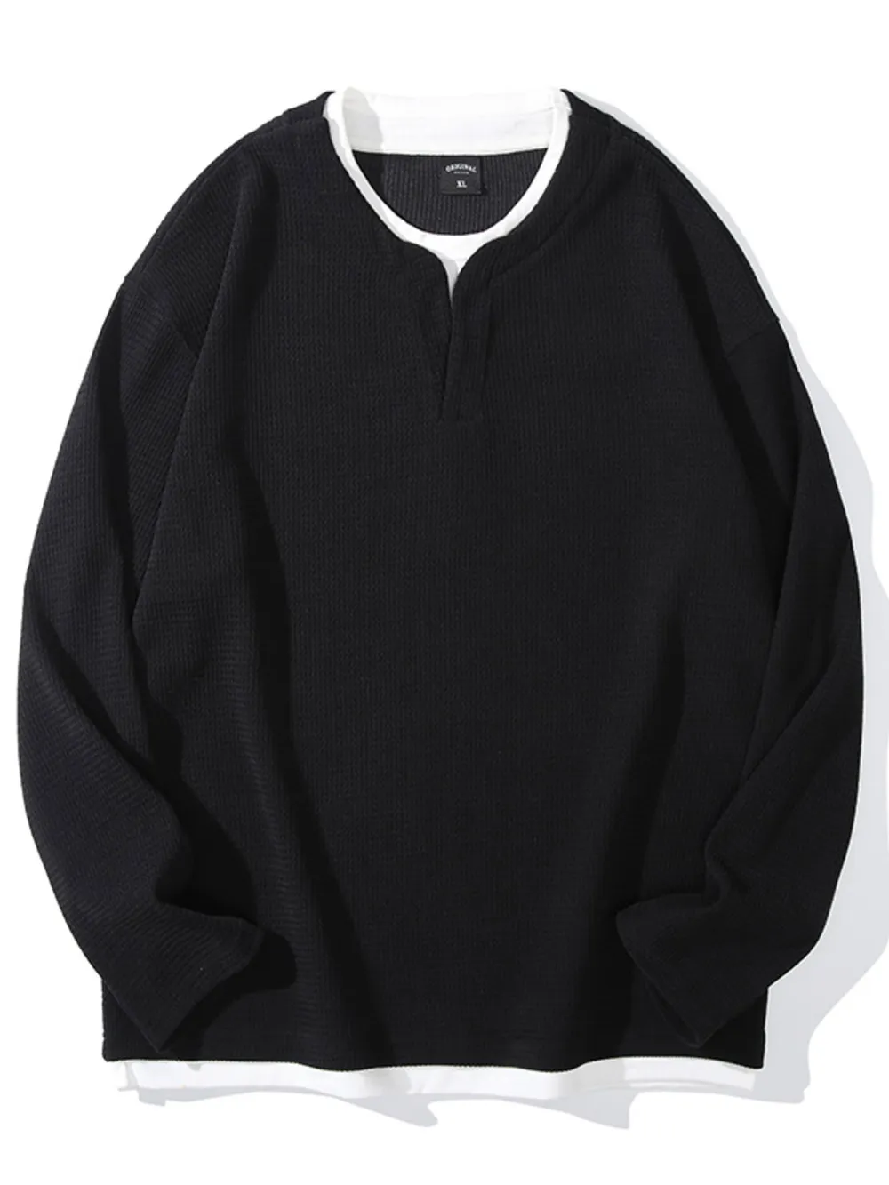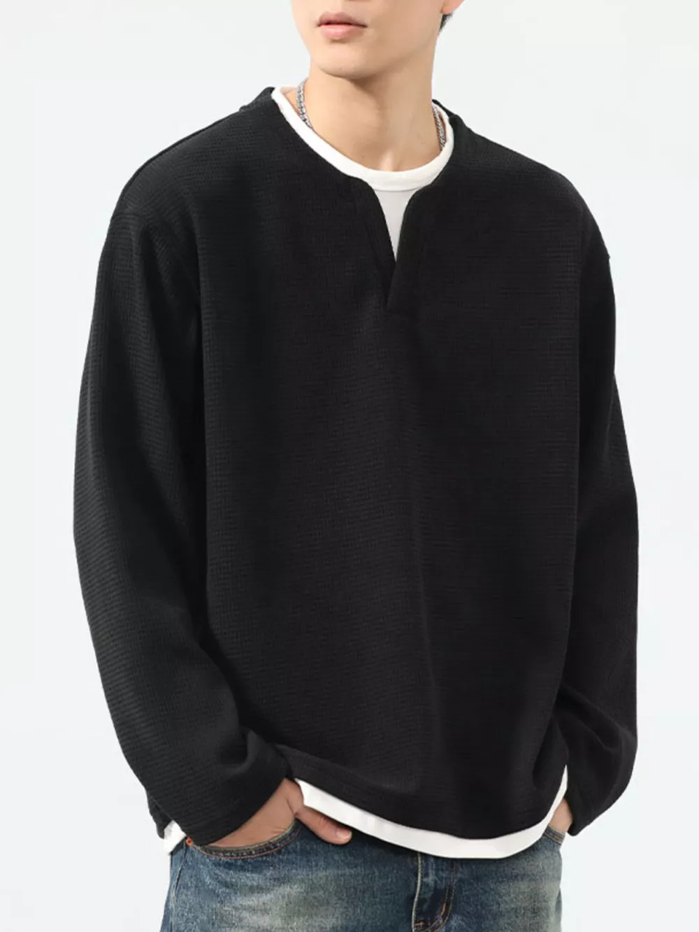 Men's Plus Size Waffle Knit Long Sleeve Top