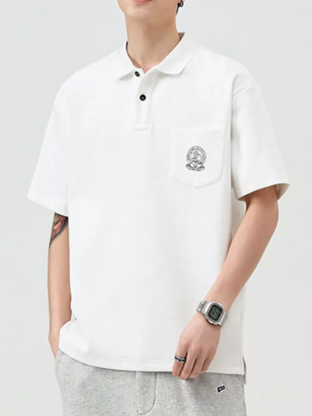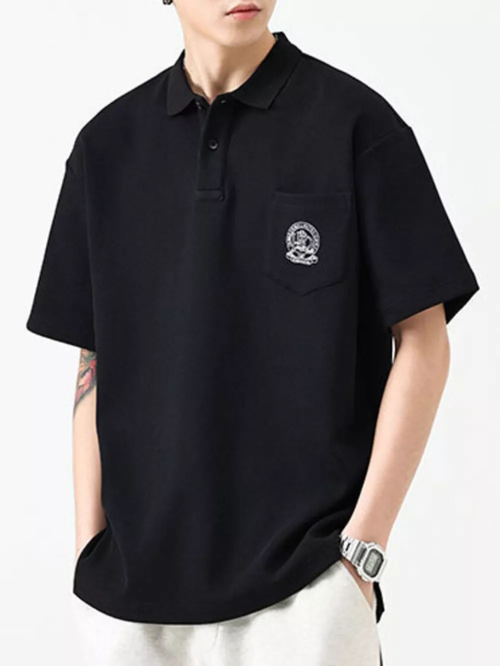 - Features:Basic style,Buttoned,Pocketed