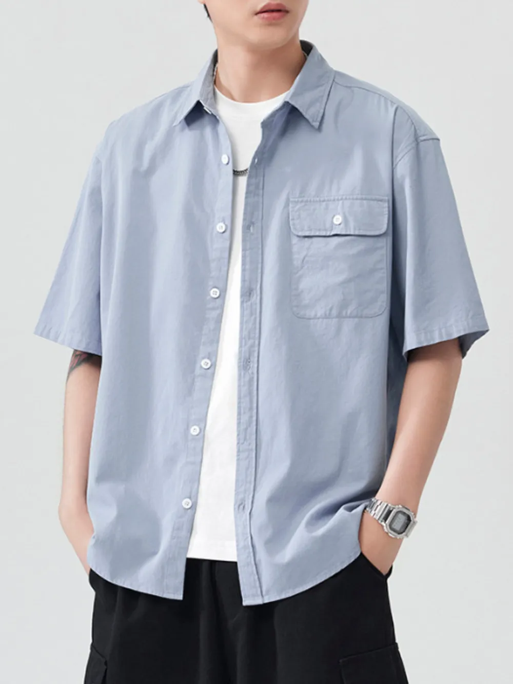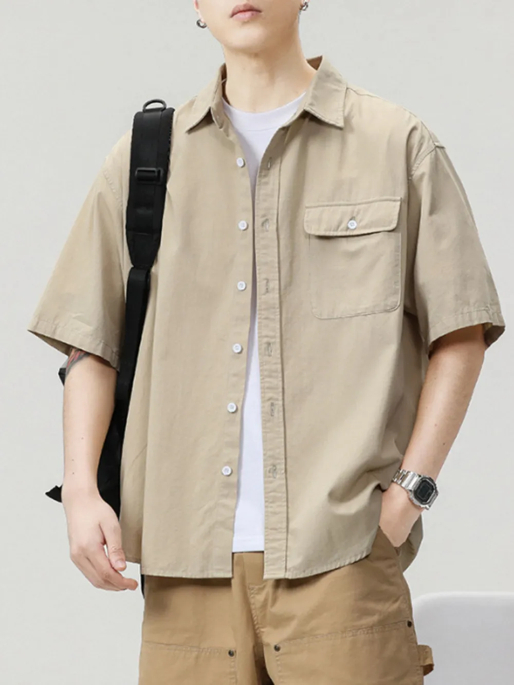 - Features:Basic style,Oversized,Buttoned,Pocketed