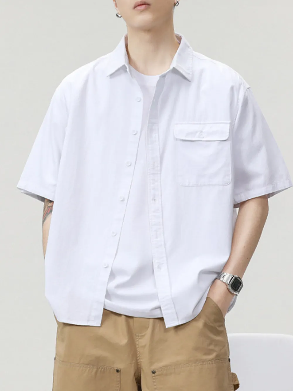 Men's Plus Size Button Up Short Sleeve Shirt