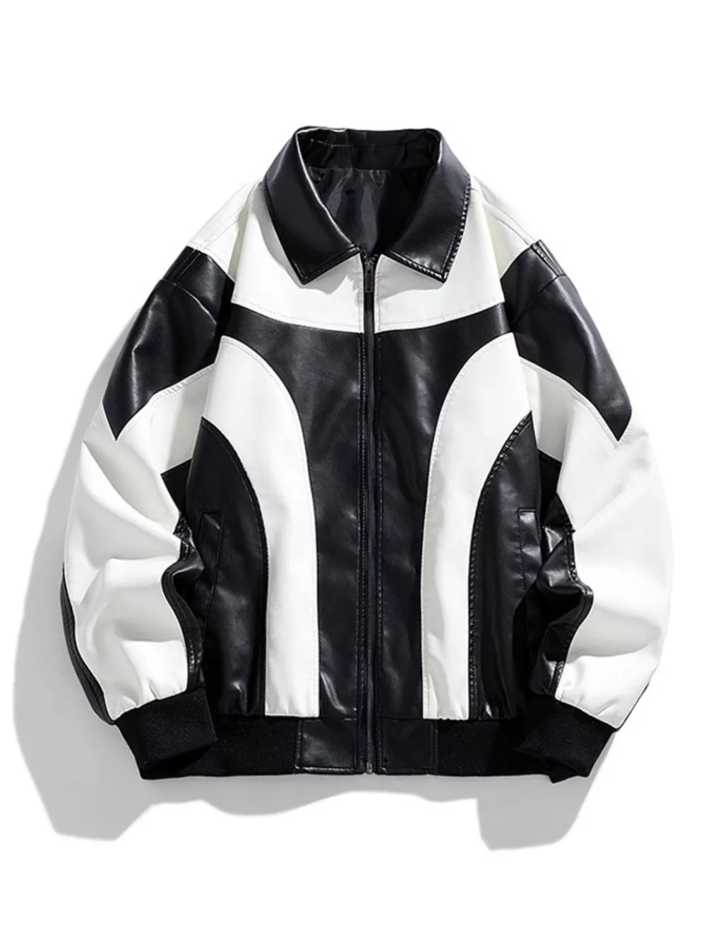 Men's Two-Tone Retro Style Faux Leather Jacket