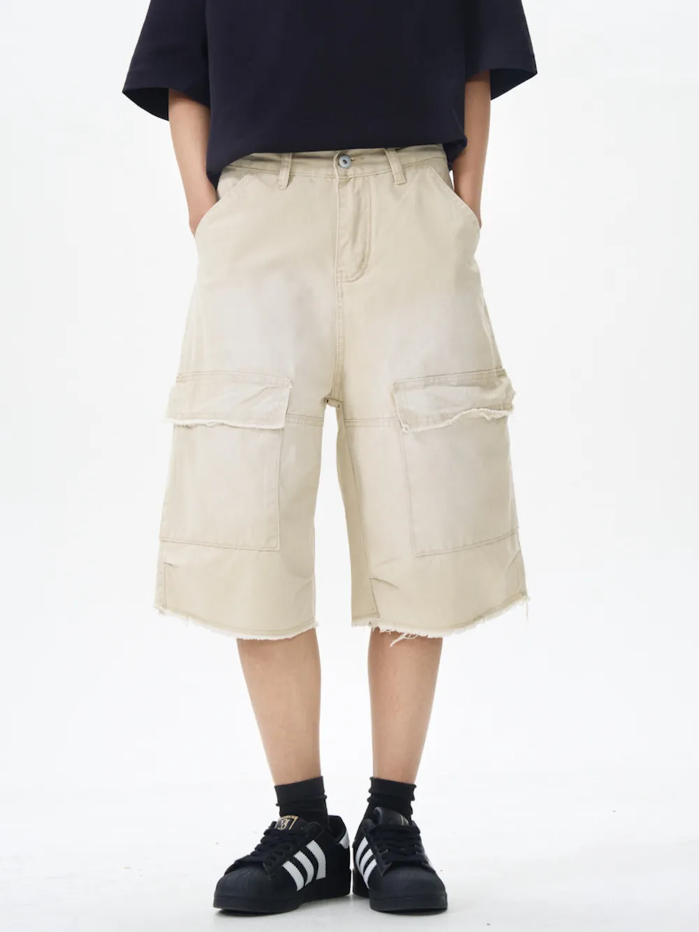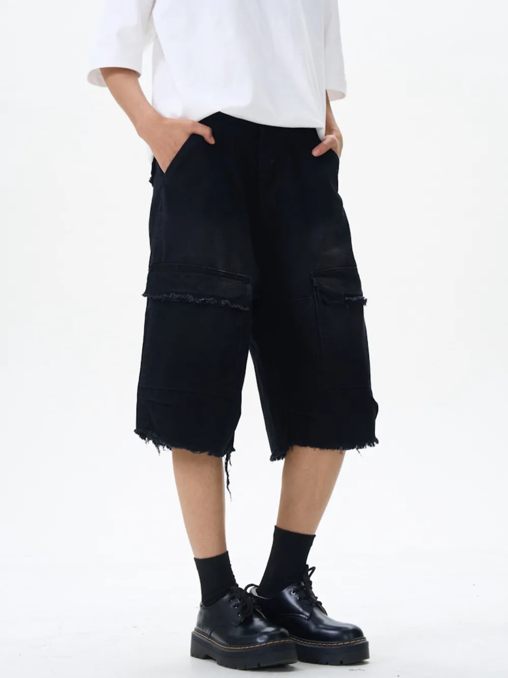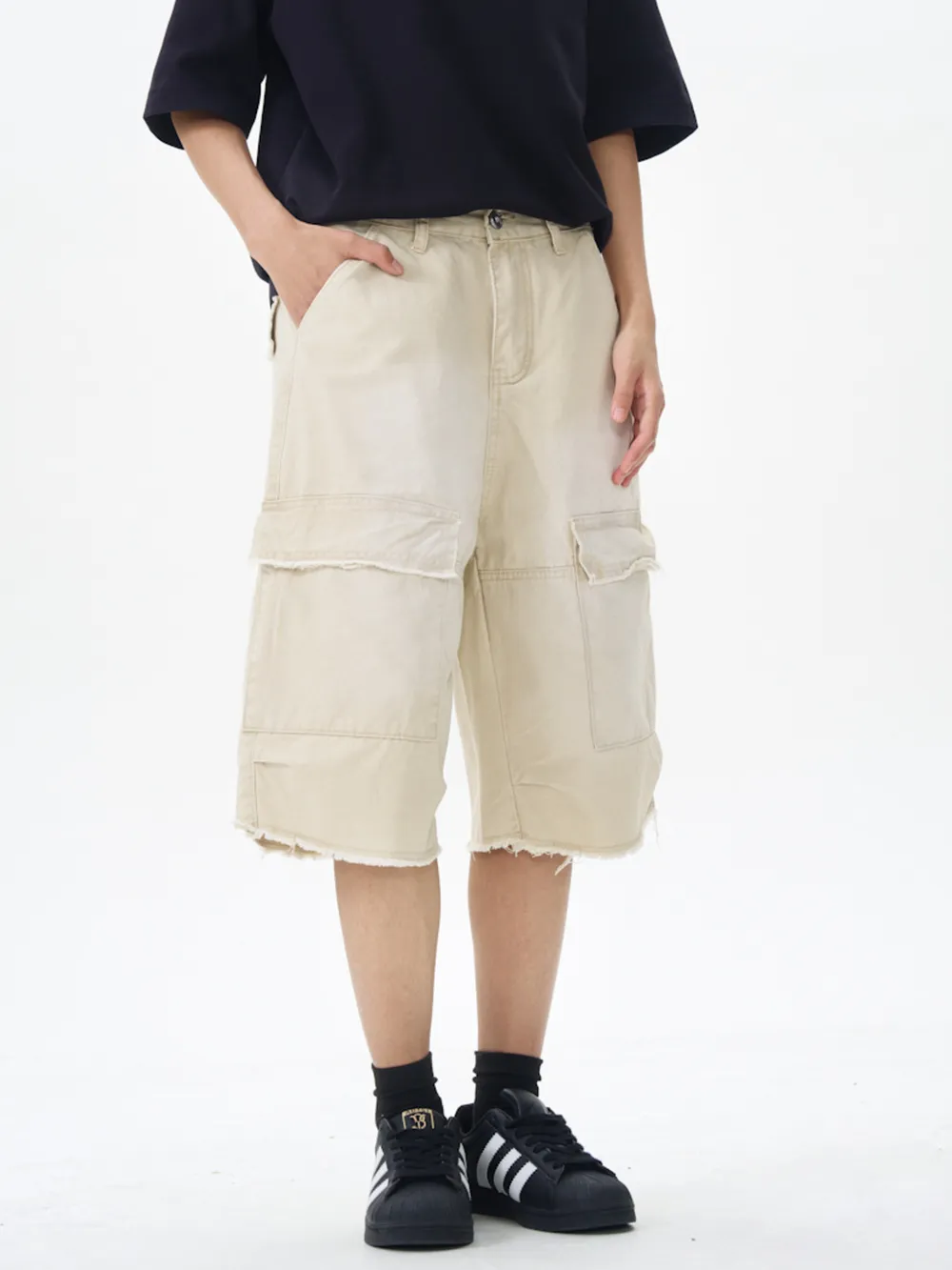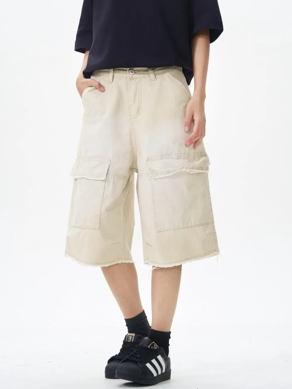 - Features:Raw Hem,Pocketed