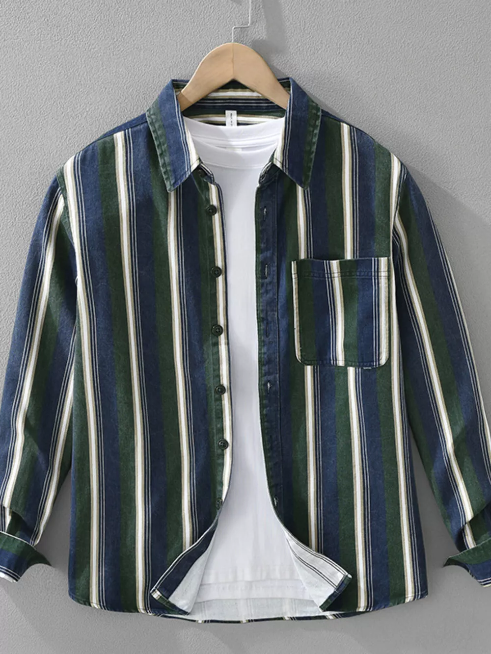 Men's Plus Size Striped Casual Long Sleeve Shirt