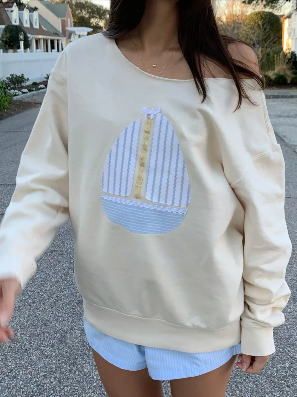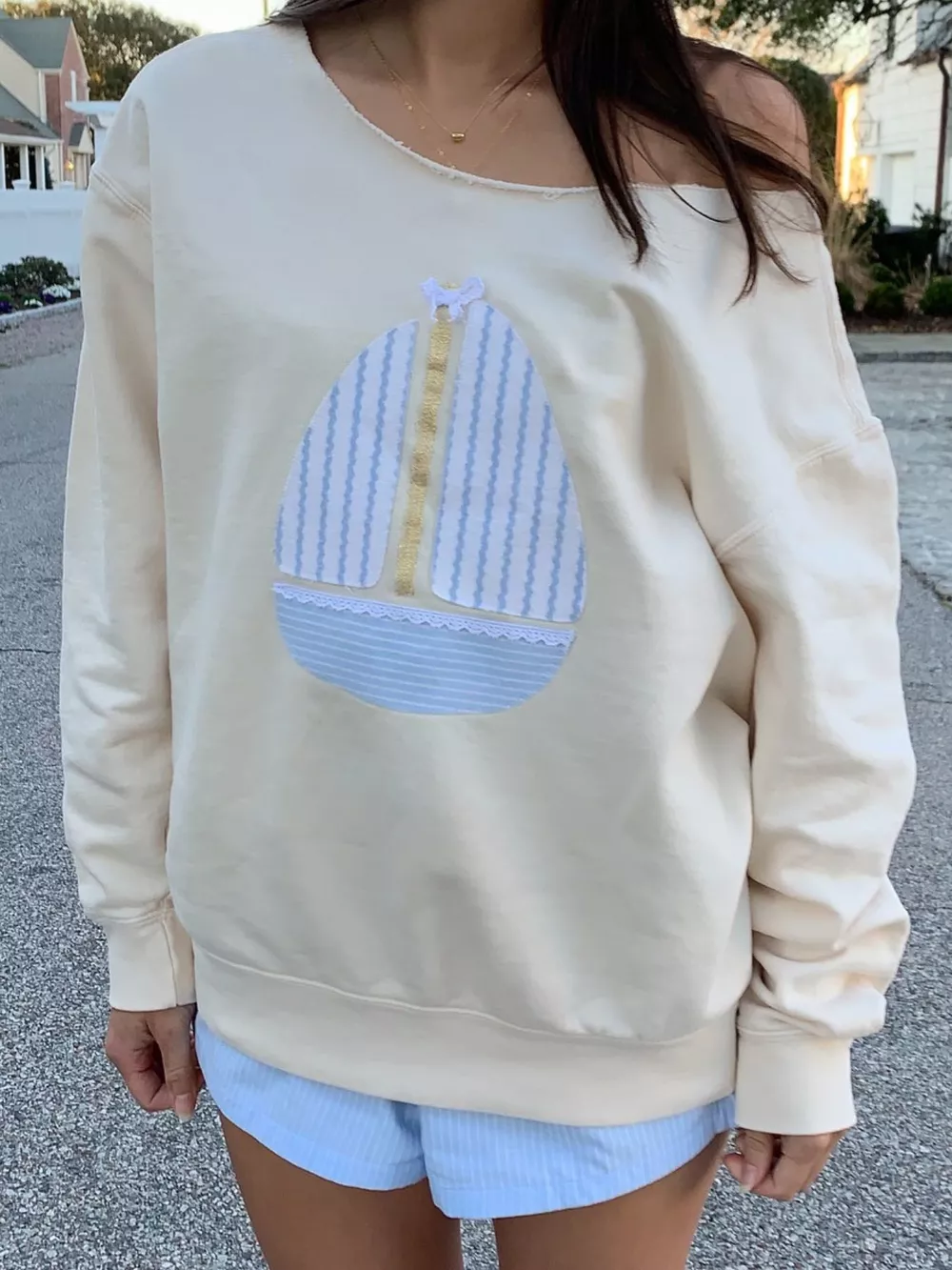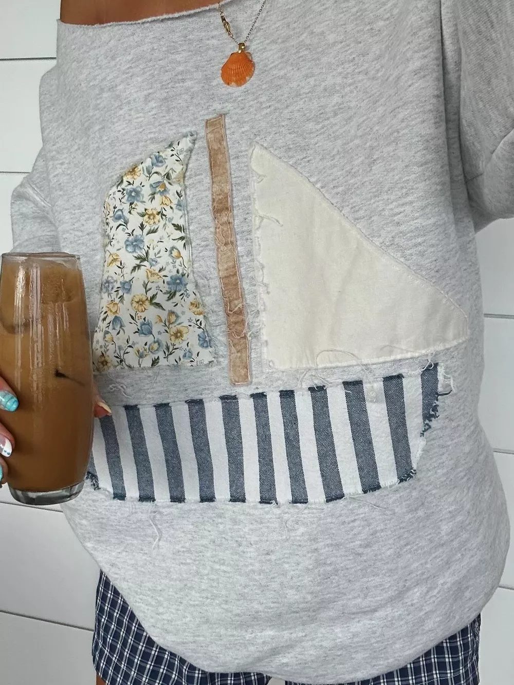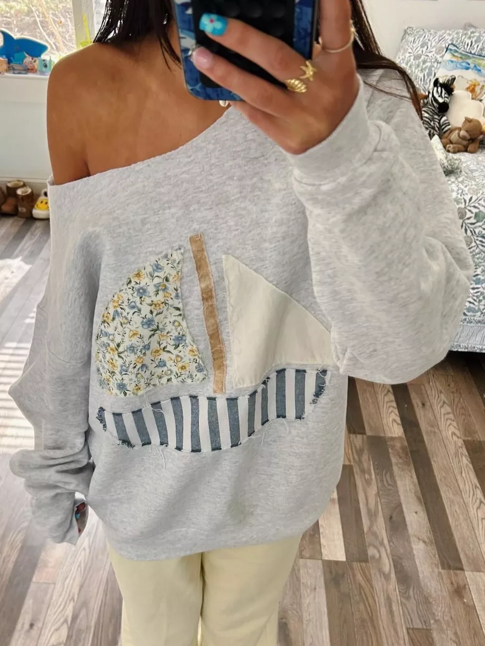 Boat Neck Long Sleeve Patchwork Sweatshirt