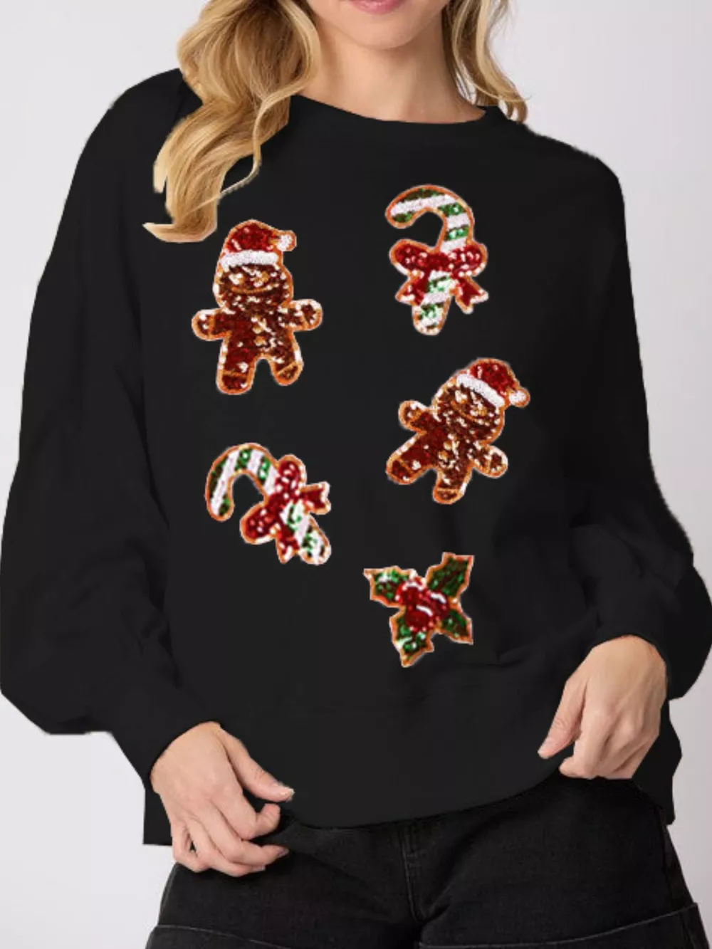 Christmas Holiday Sequined Gingerbread Sweatshirt