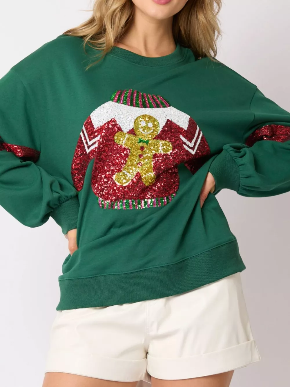 Christmas Sequin Santa Hat Holiday Sweatshirt