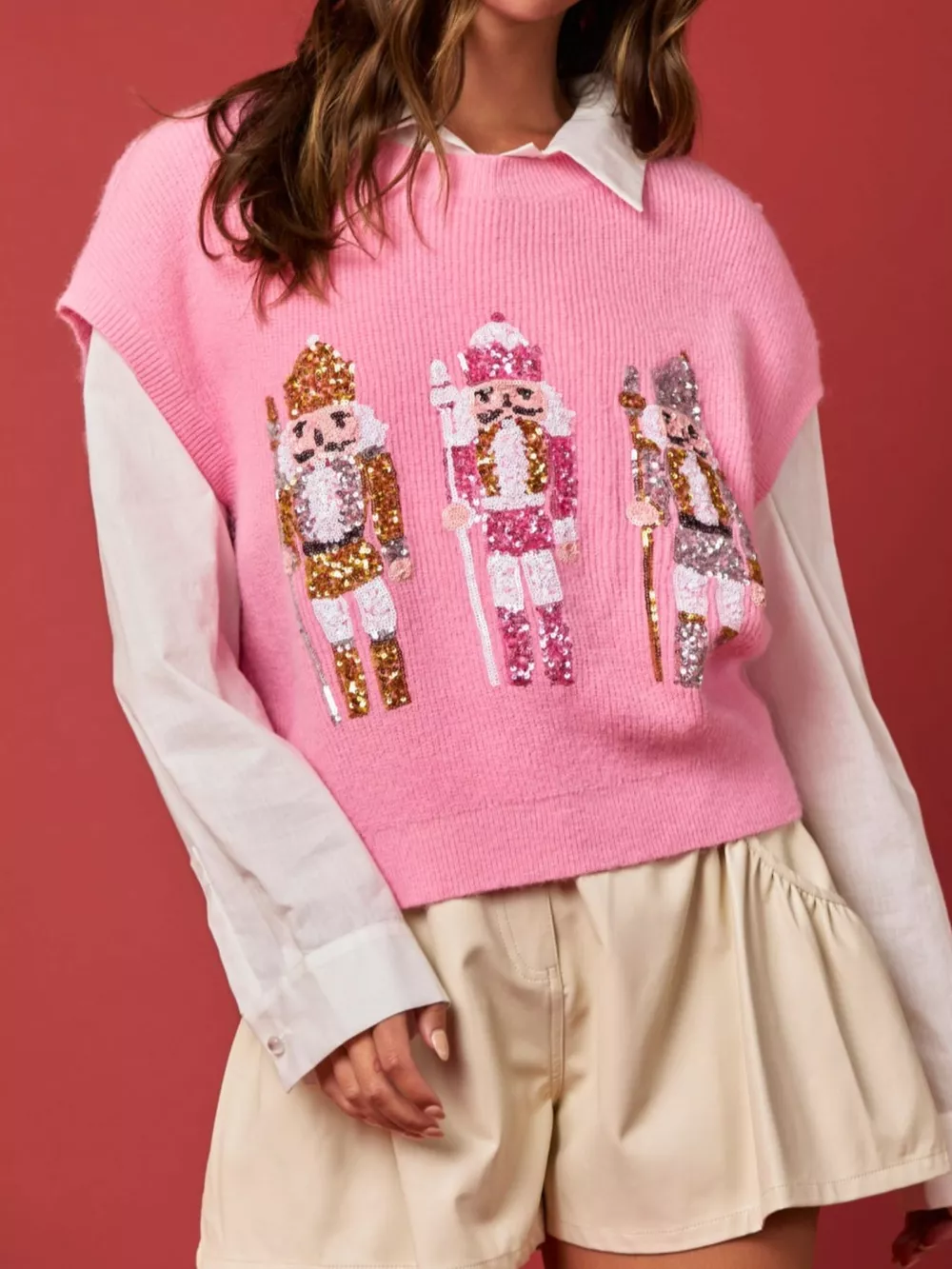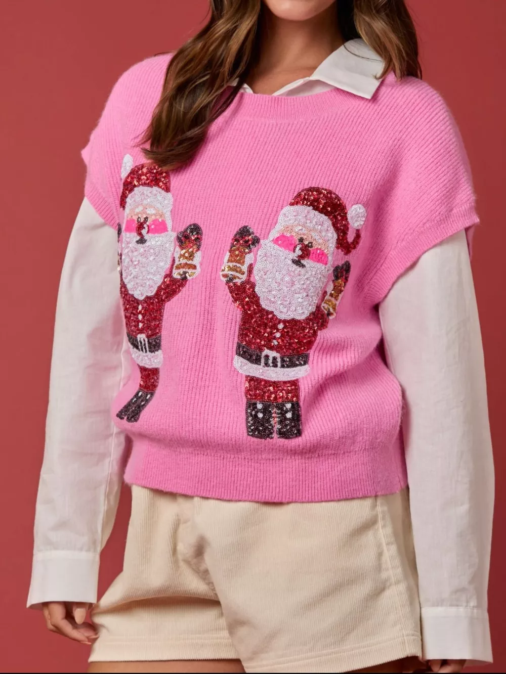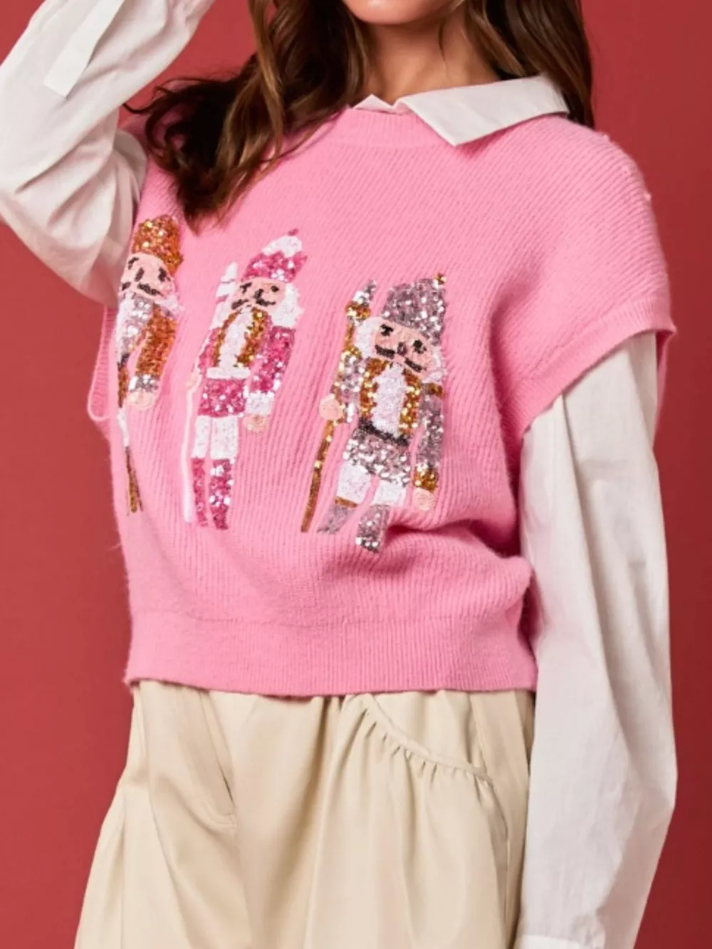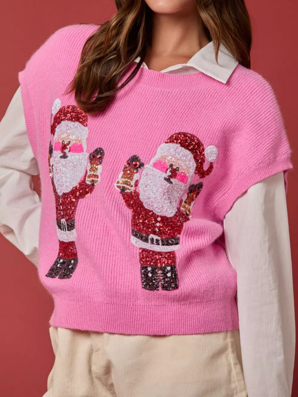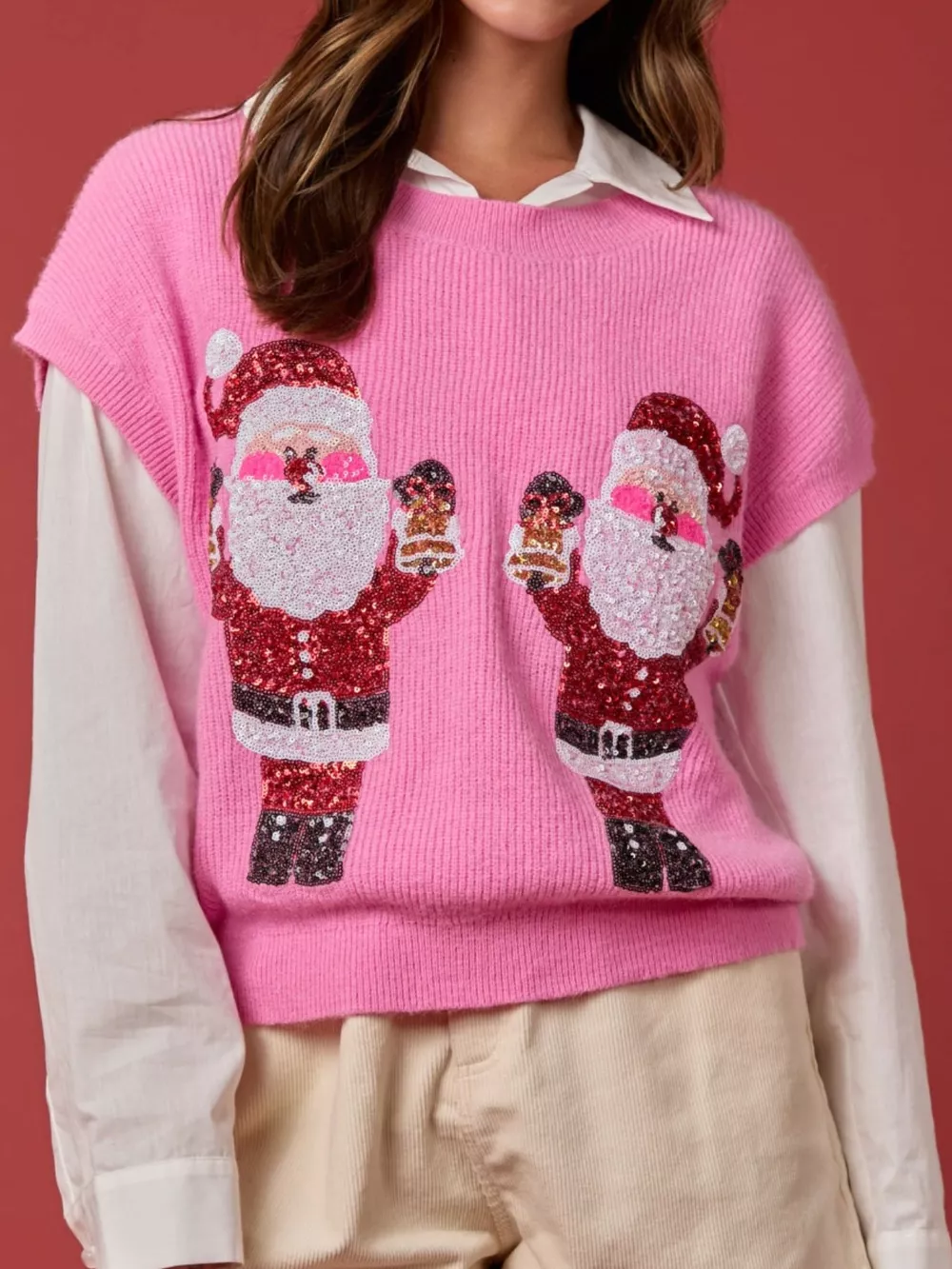 Christmas Sequin Round Neck Sweater Vest