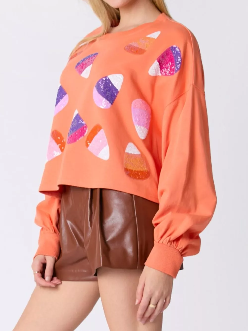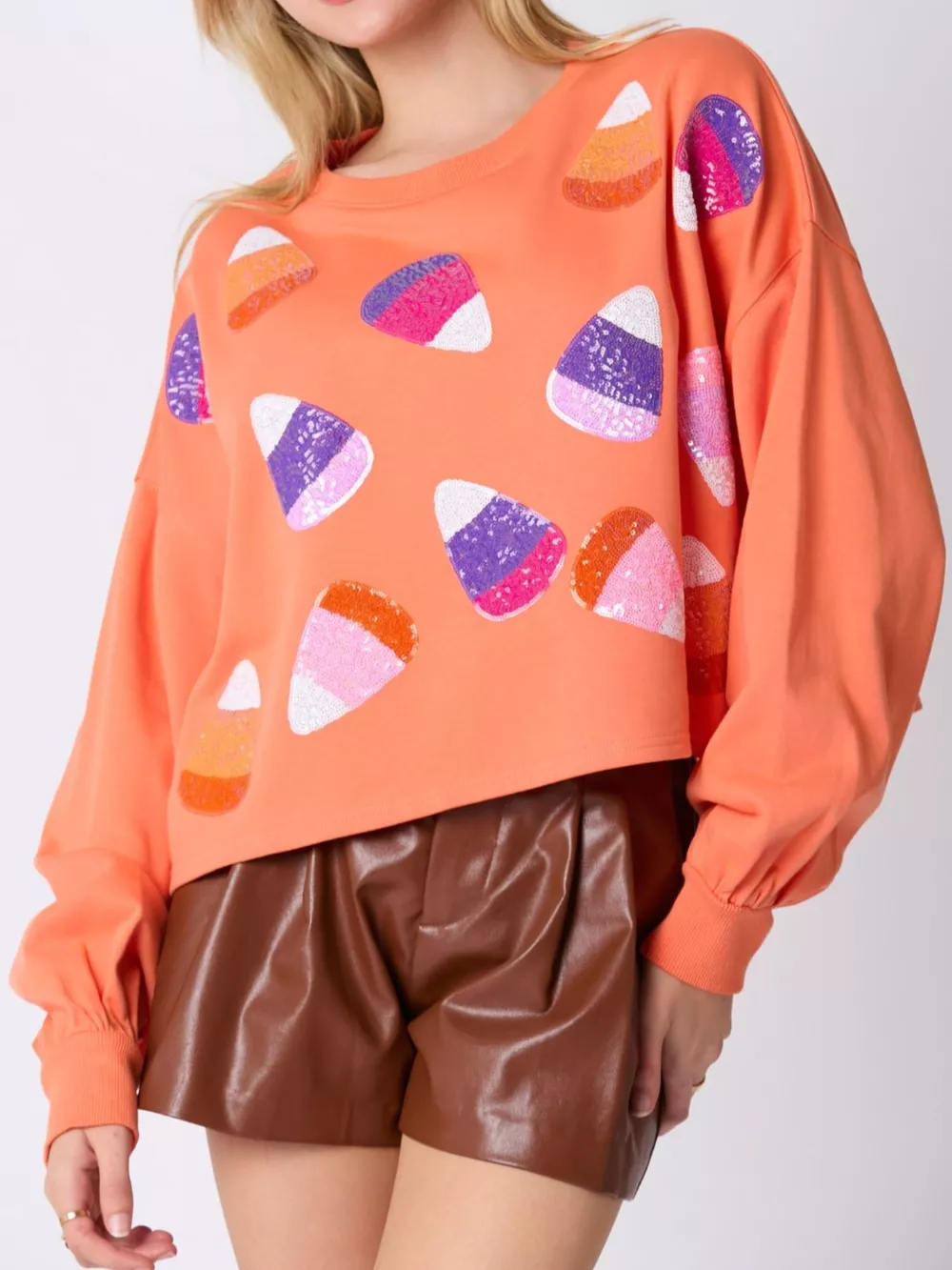 Halloween Candy Sequin Long-Sleeve Sweatshirt