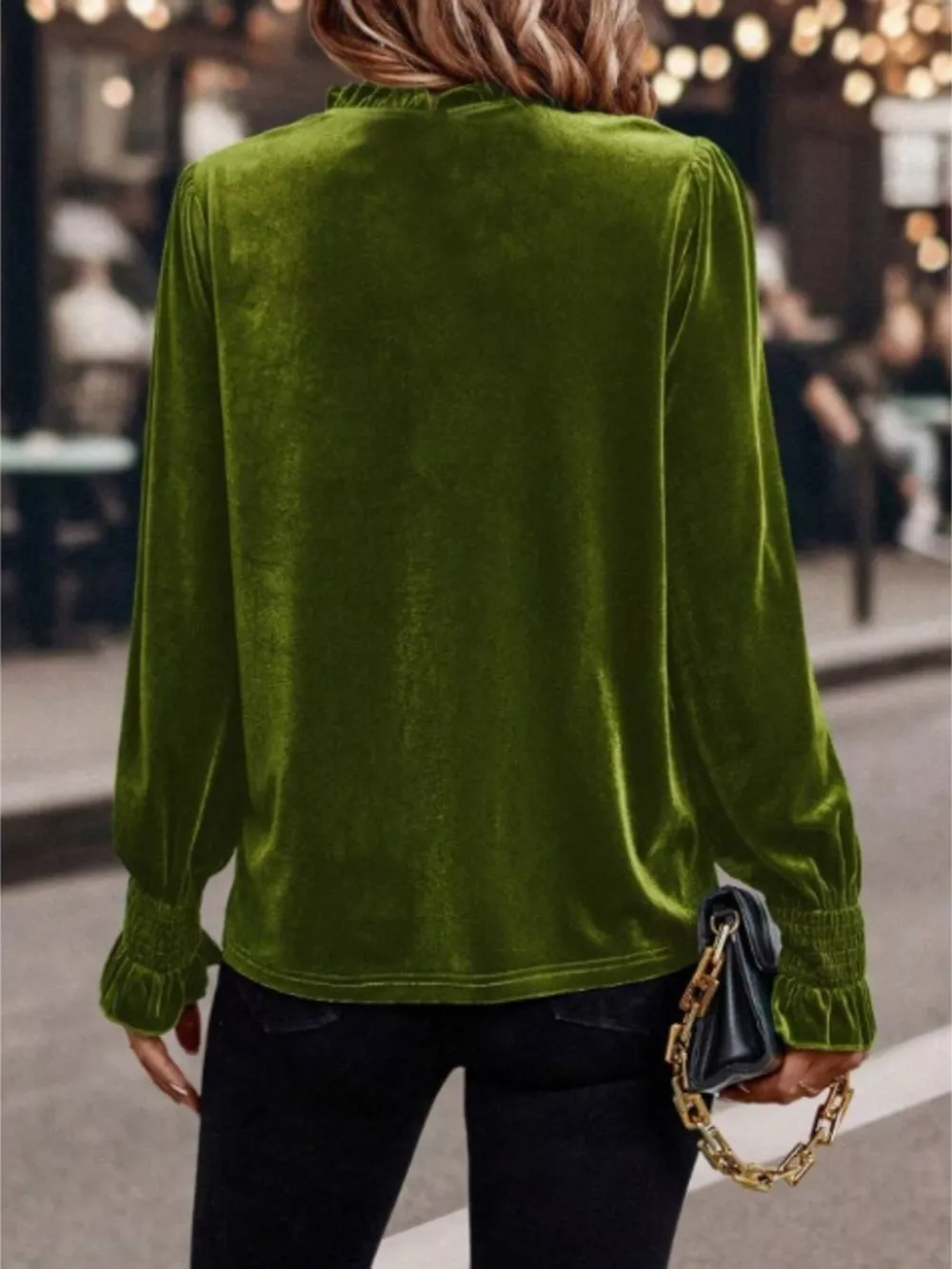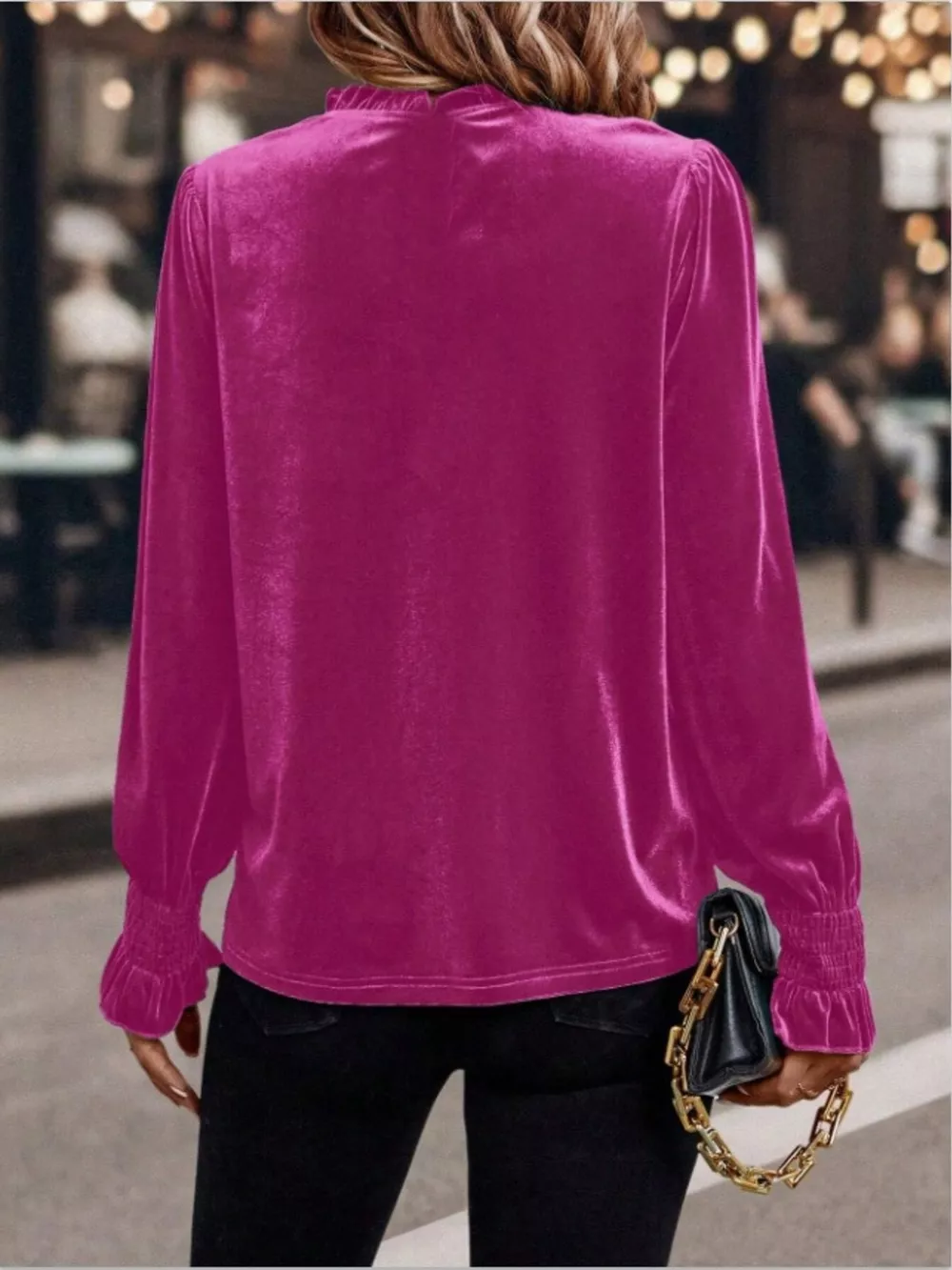 Velvet Ruffle Trim Blouse
