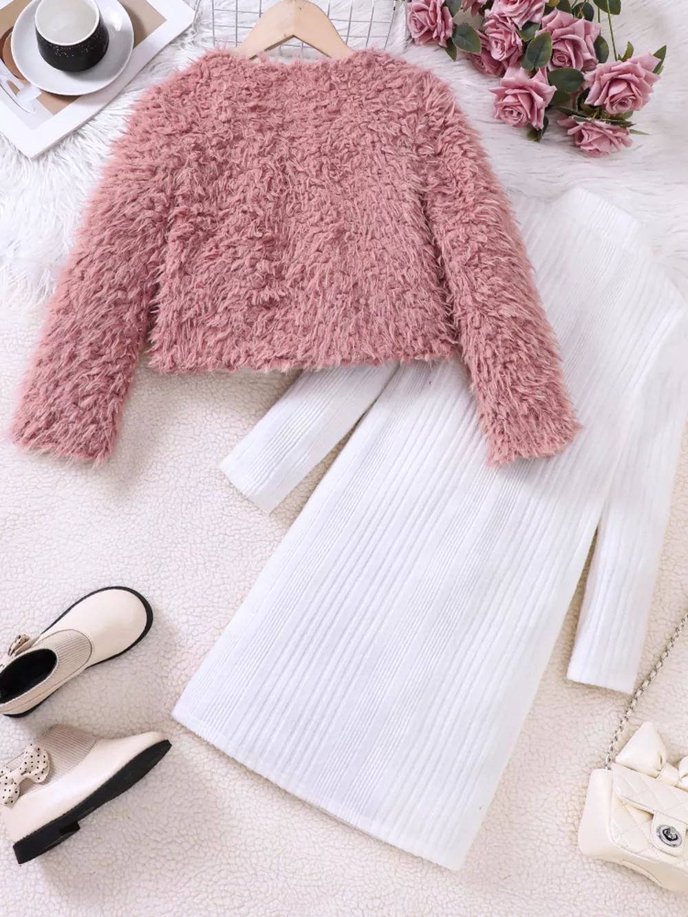 Detailed description of the Children's Faux Fur Jacket & Ribbed Dress Set, highlighting quality, design, and unique features that make it appealing to end consumers.
