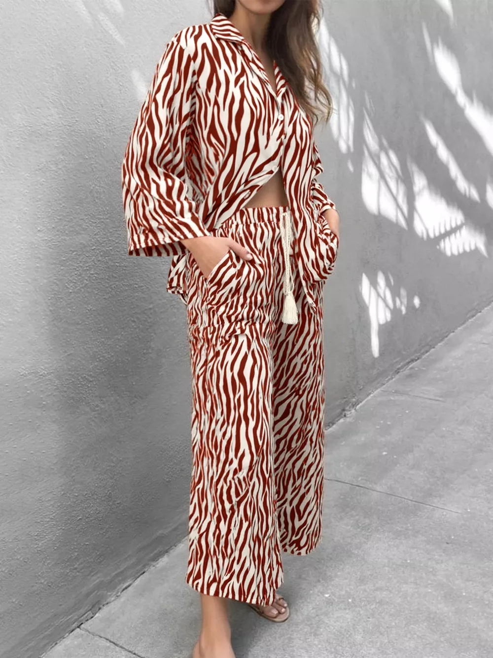 Zebra Print Relaxed Fit Top and Pants Two-Piece Set