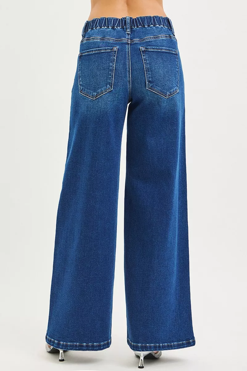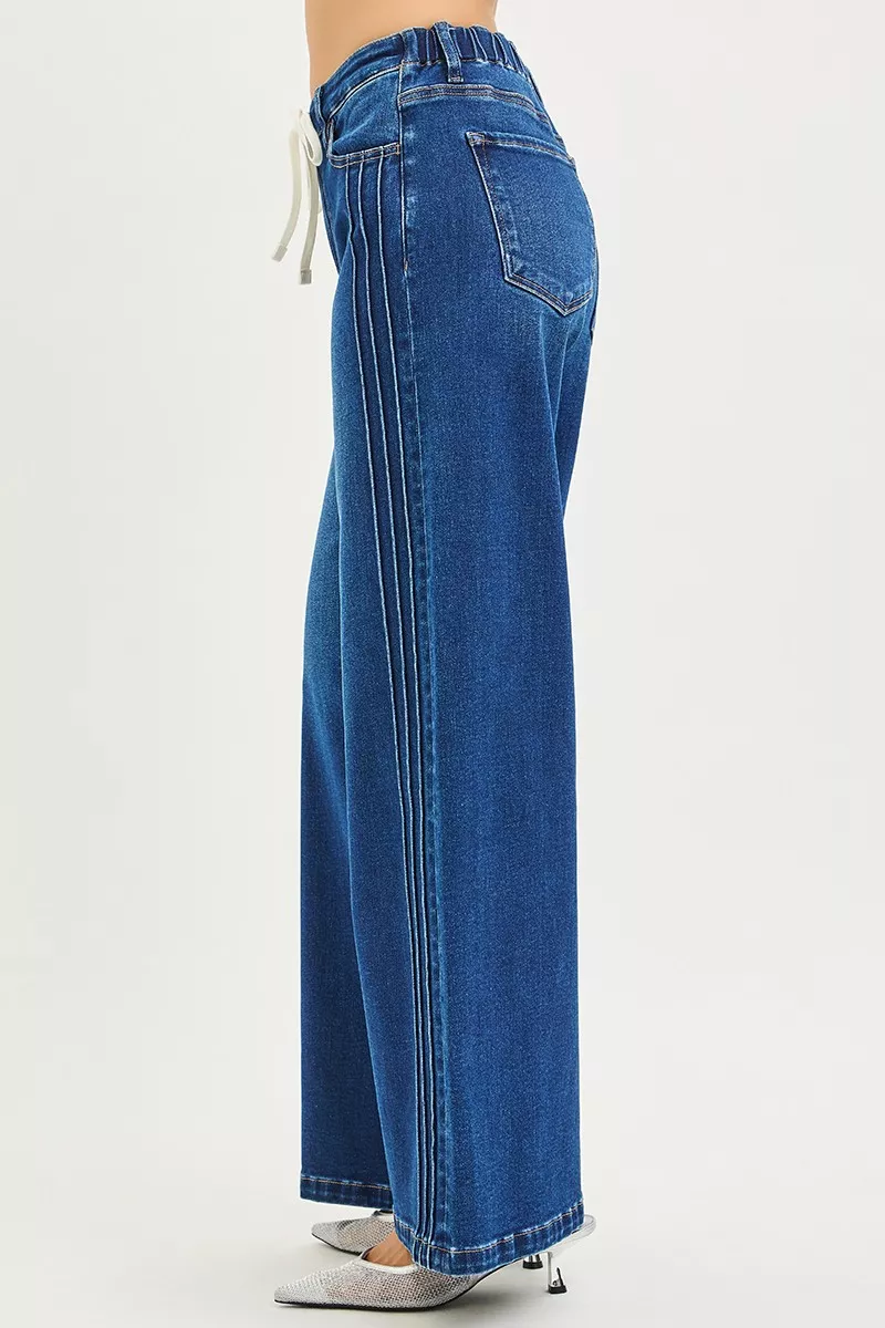 RISEN Full Size Mid Rise Wide Side Pintuck Jeans with Front Drawstring Plus Size