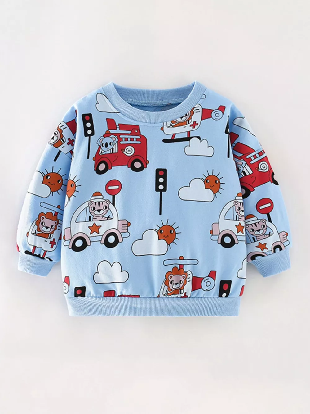 Children's Cartoon Vehicle Print Crew Neck Sweatshirt