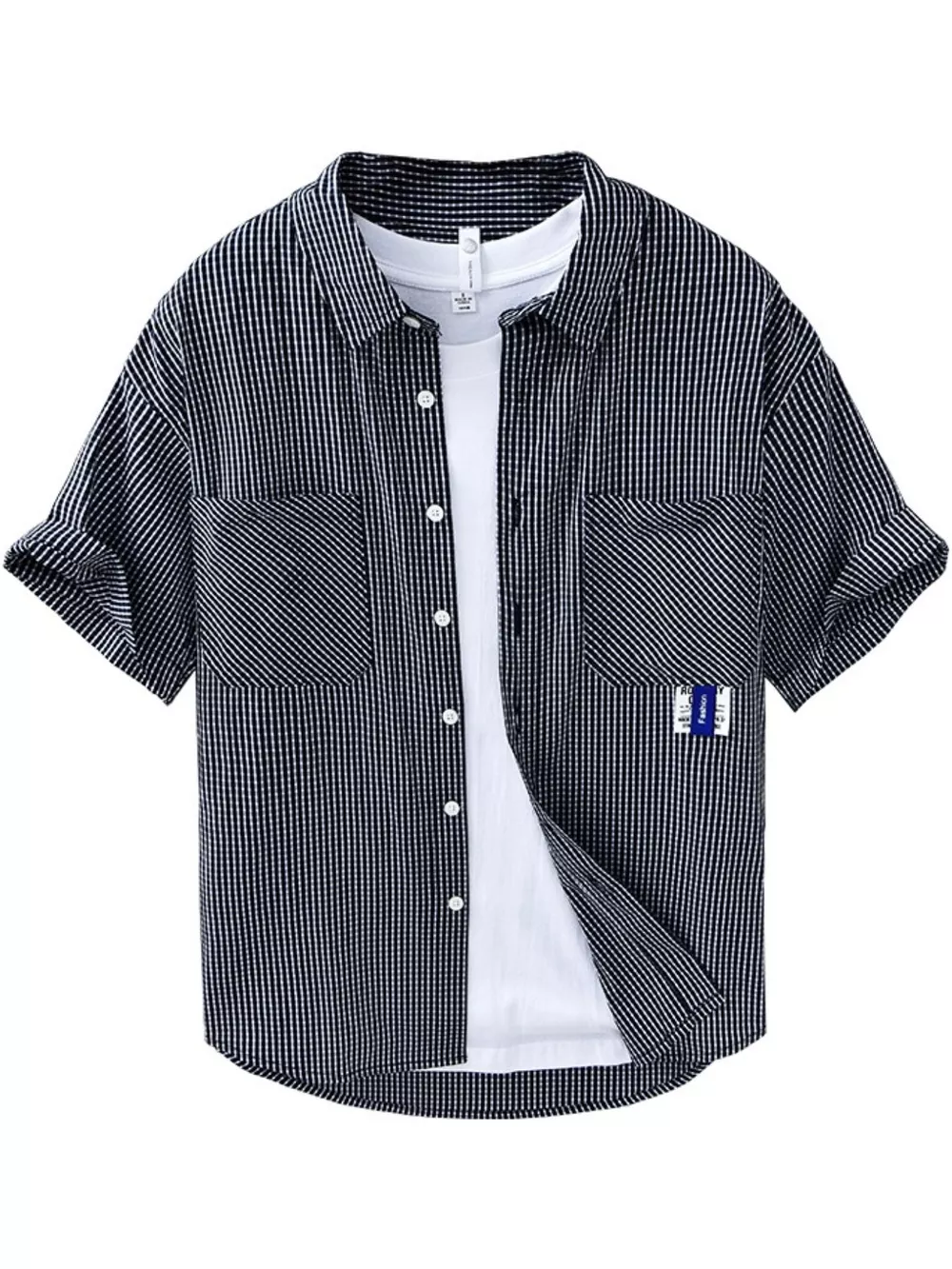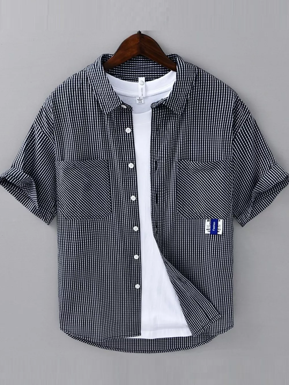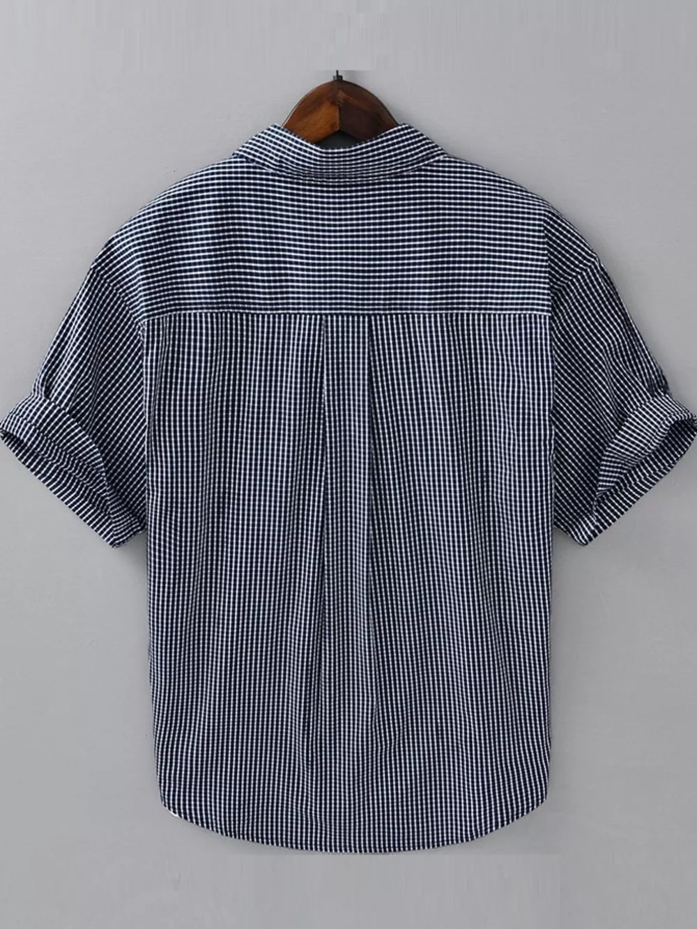 Men's Plus Size Casual Plaid Short Sleeve Shirt