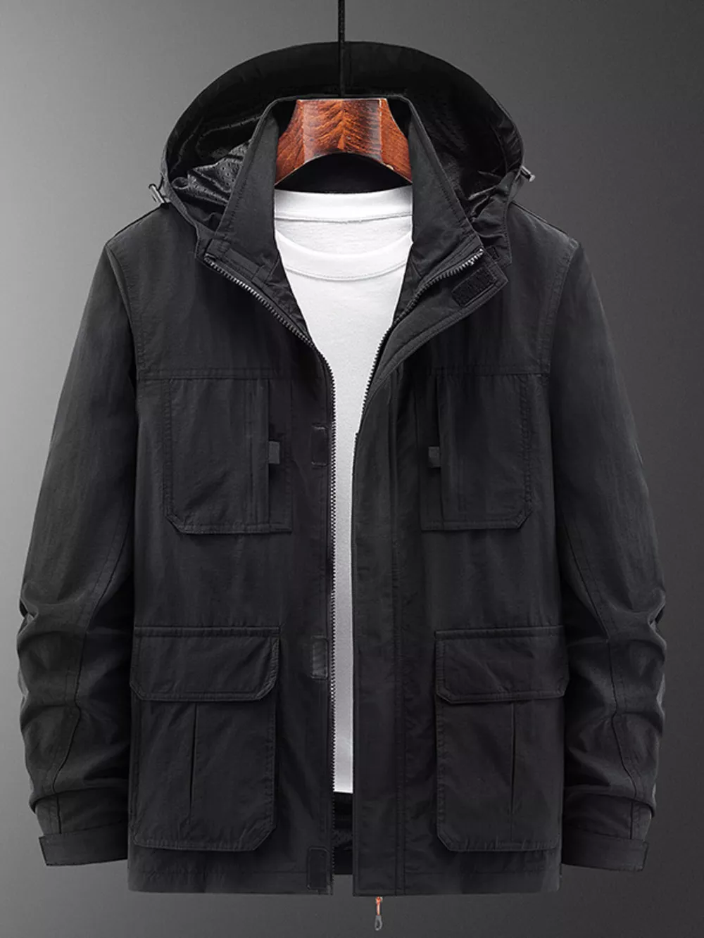 Men's Plus Size Casual Lightweight Hooded Jacket