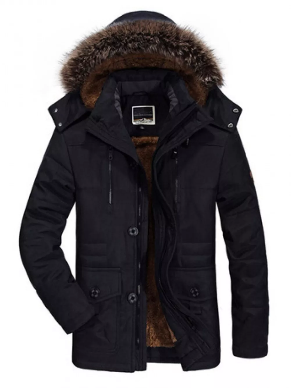 Men's Plus Size Fuzzy Hooded Zip Up Parka Coat
