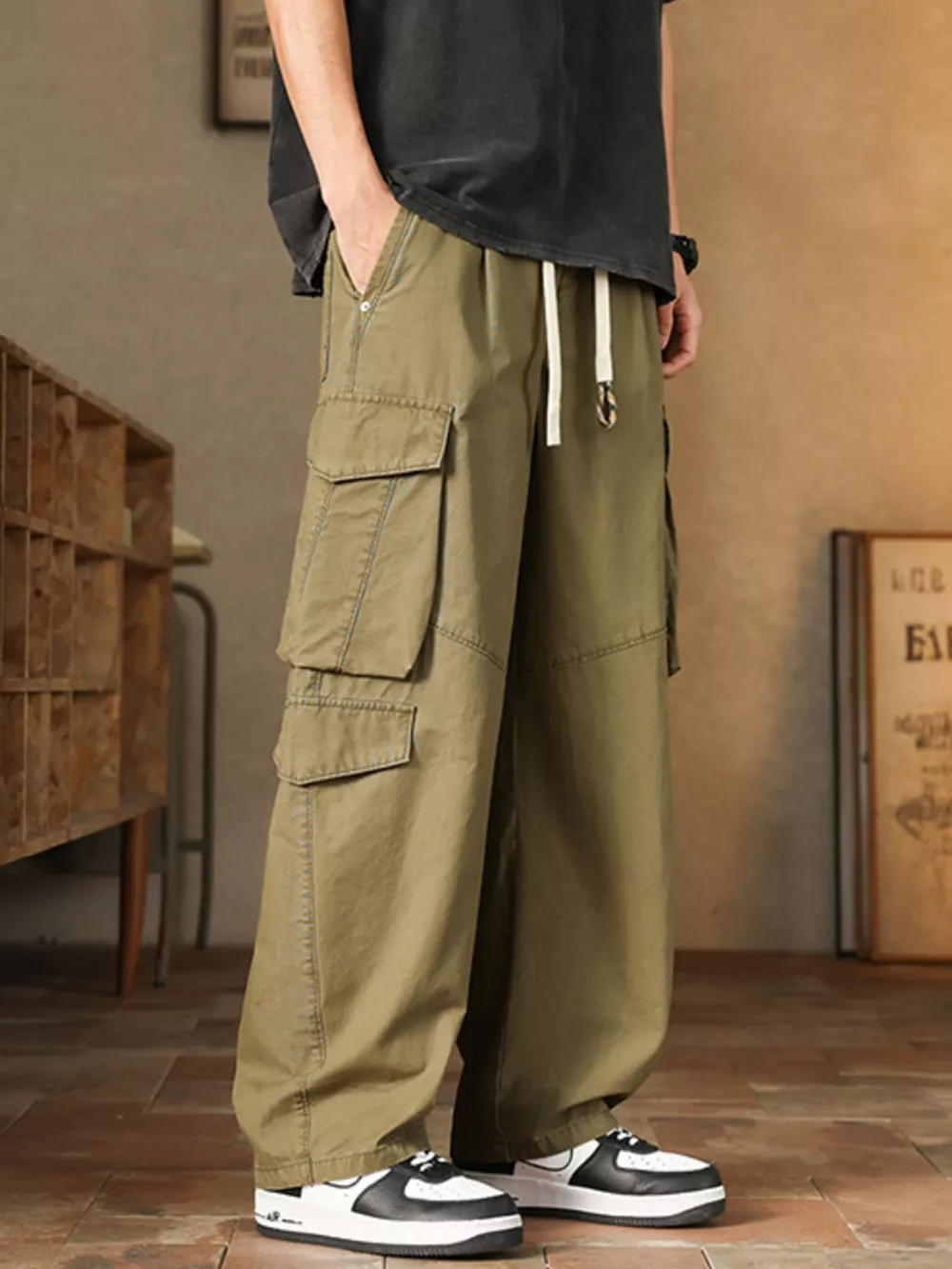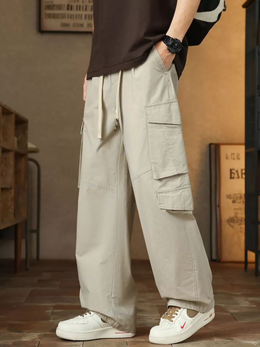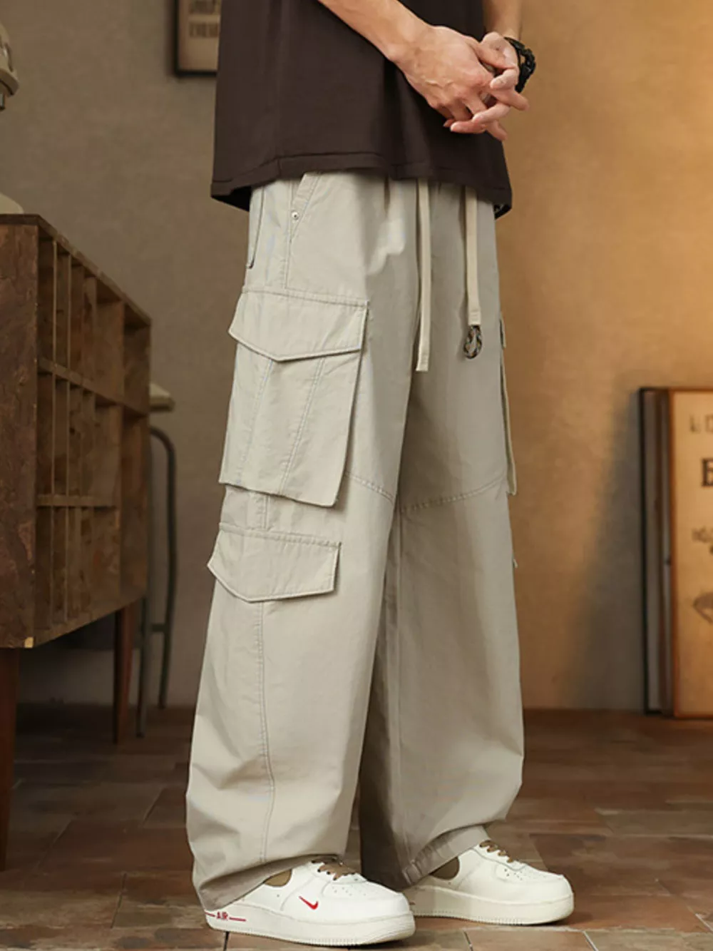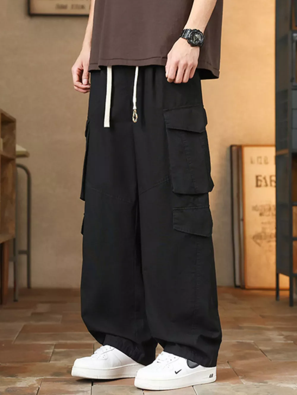 Men's Plus Size Loose Fit Cargo Pants with Drawstring