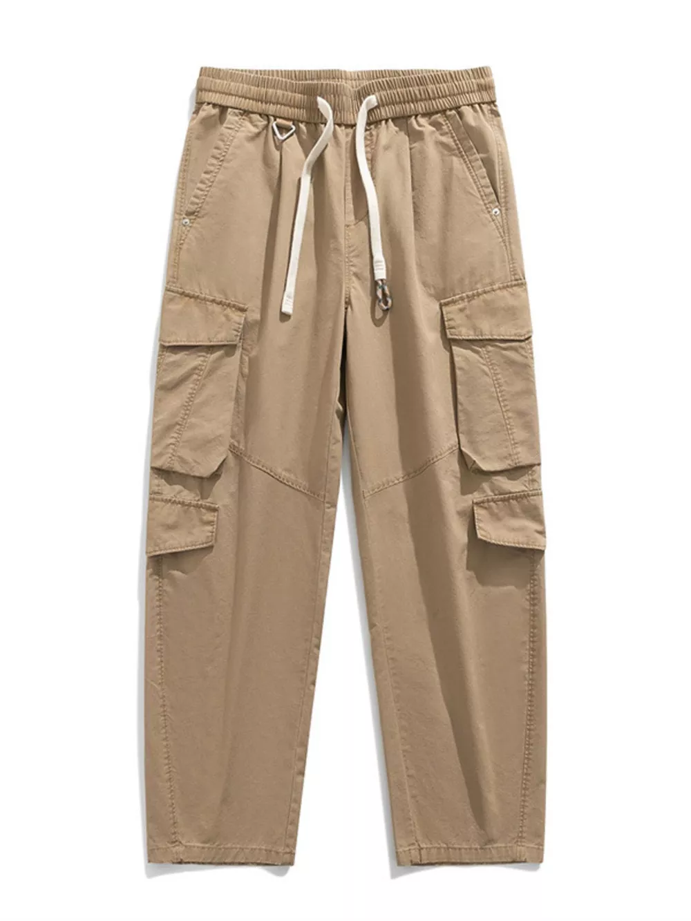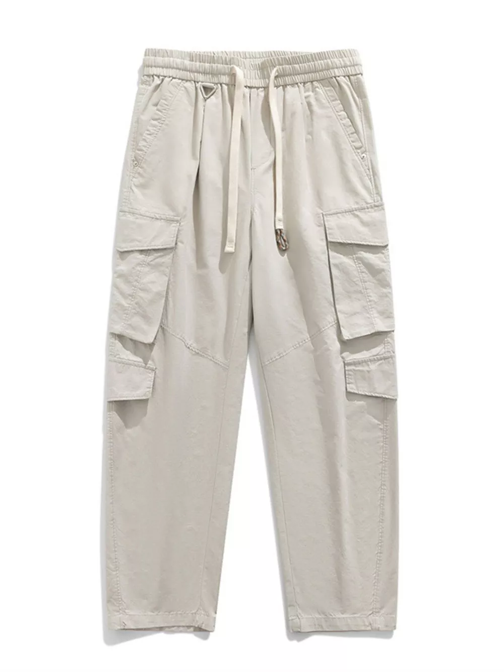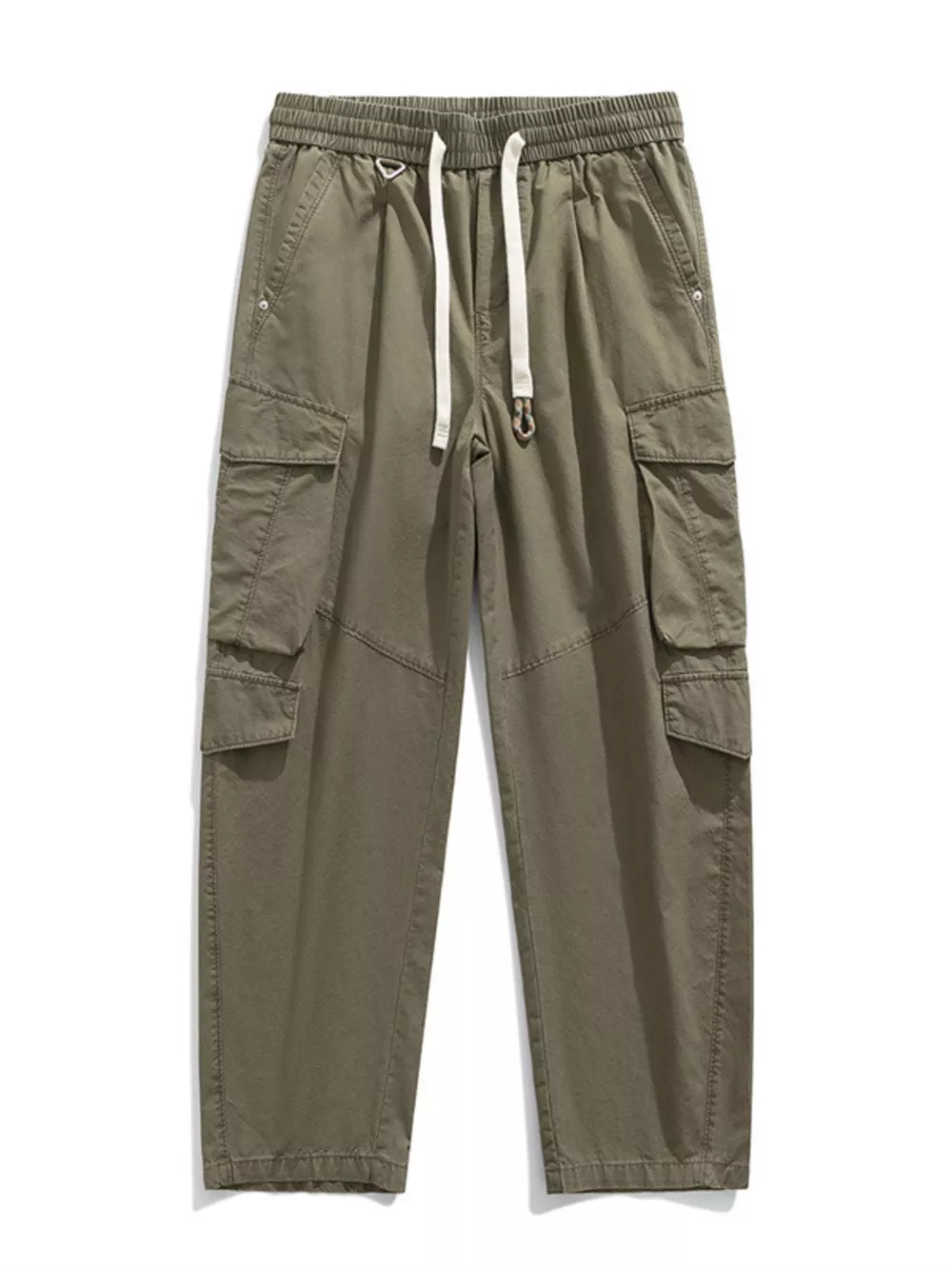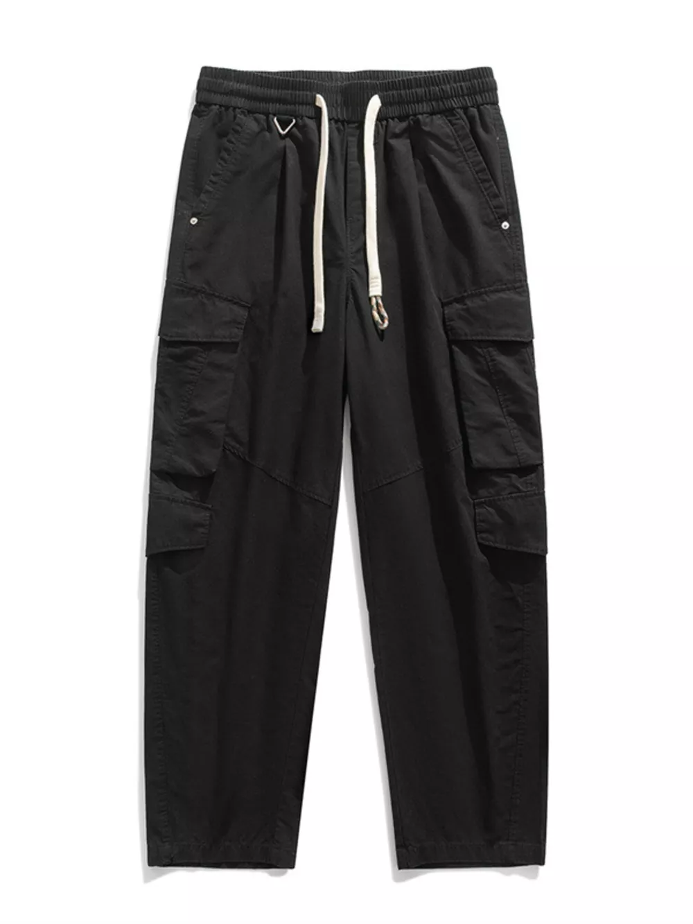 Men's Plus Size Loose Fit Cargo Pants with Drawstring