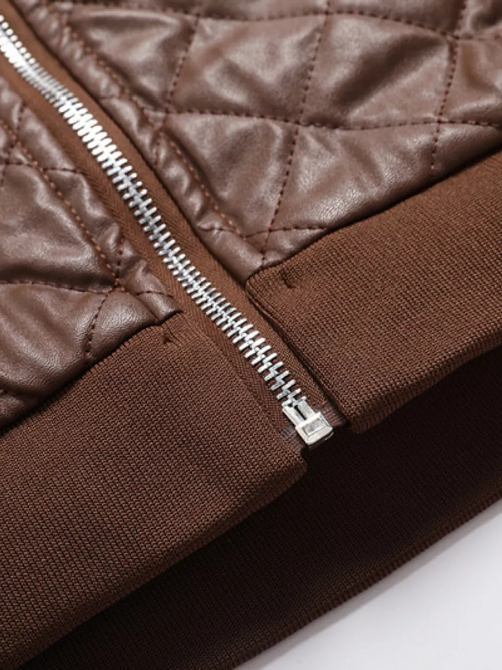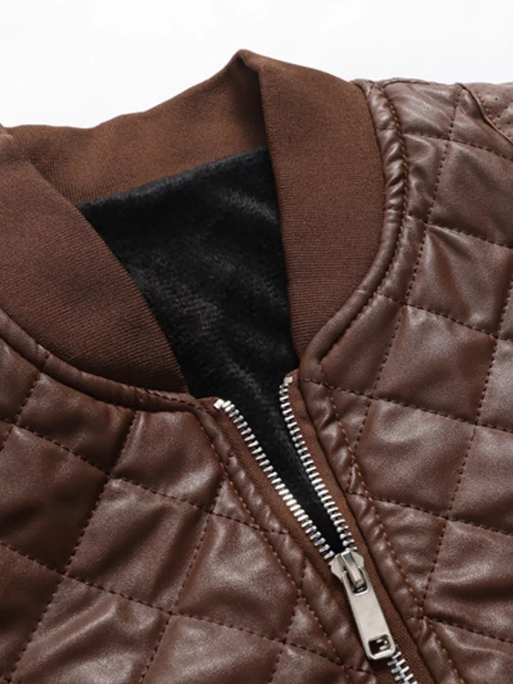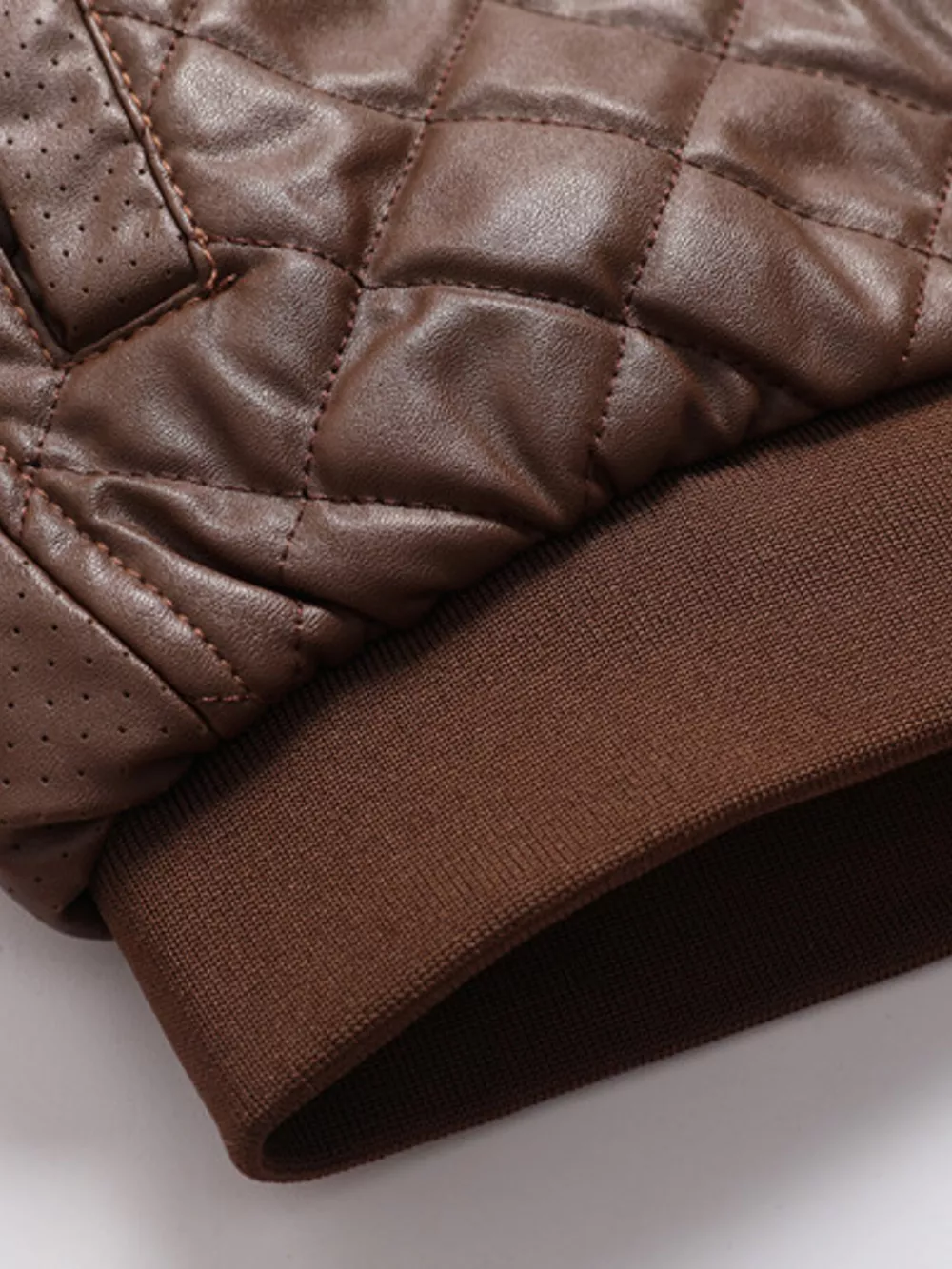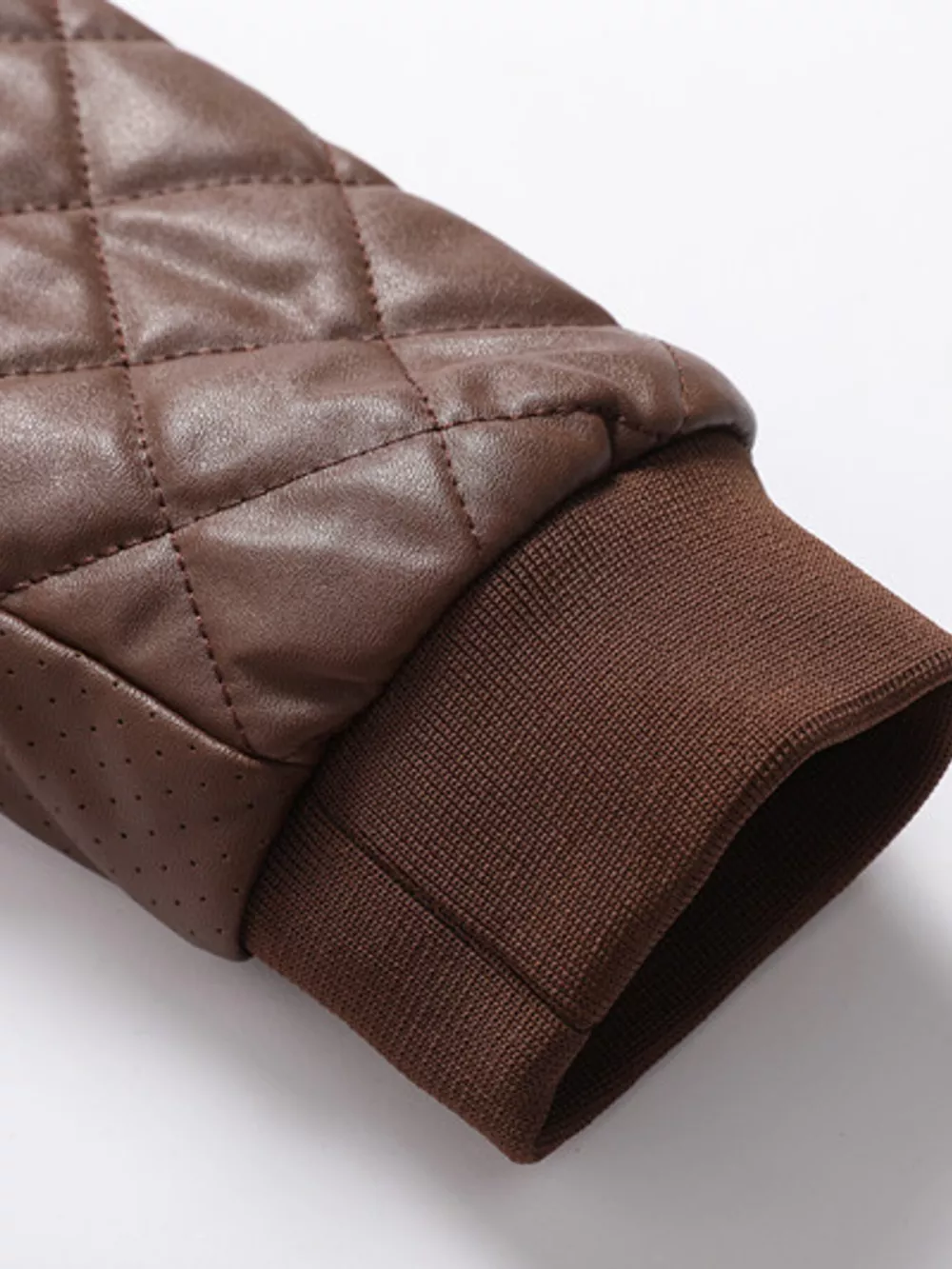 Men's Plus Size Quilted Faux Leather Bomber Jacket