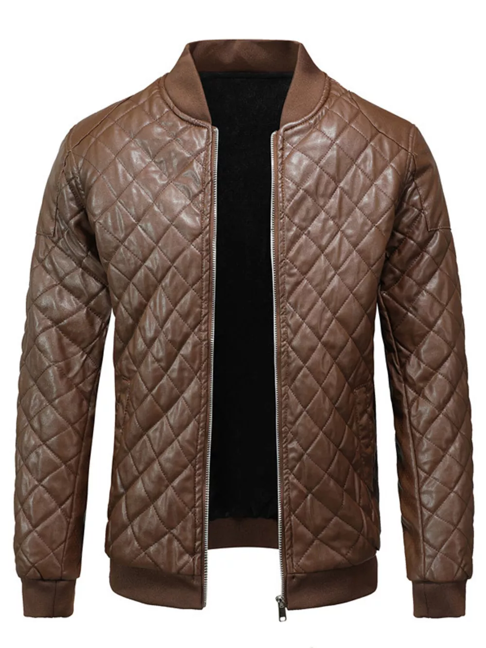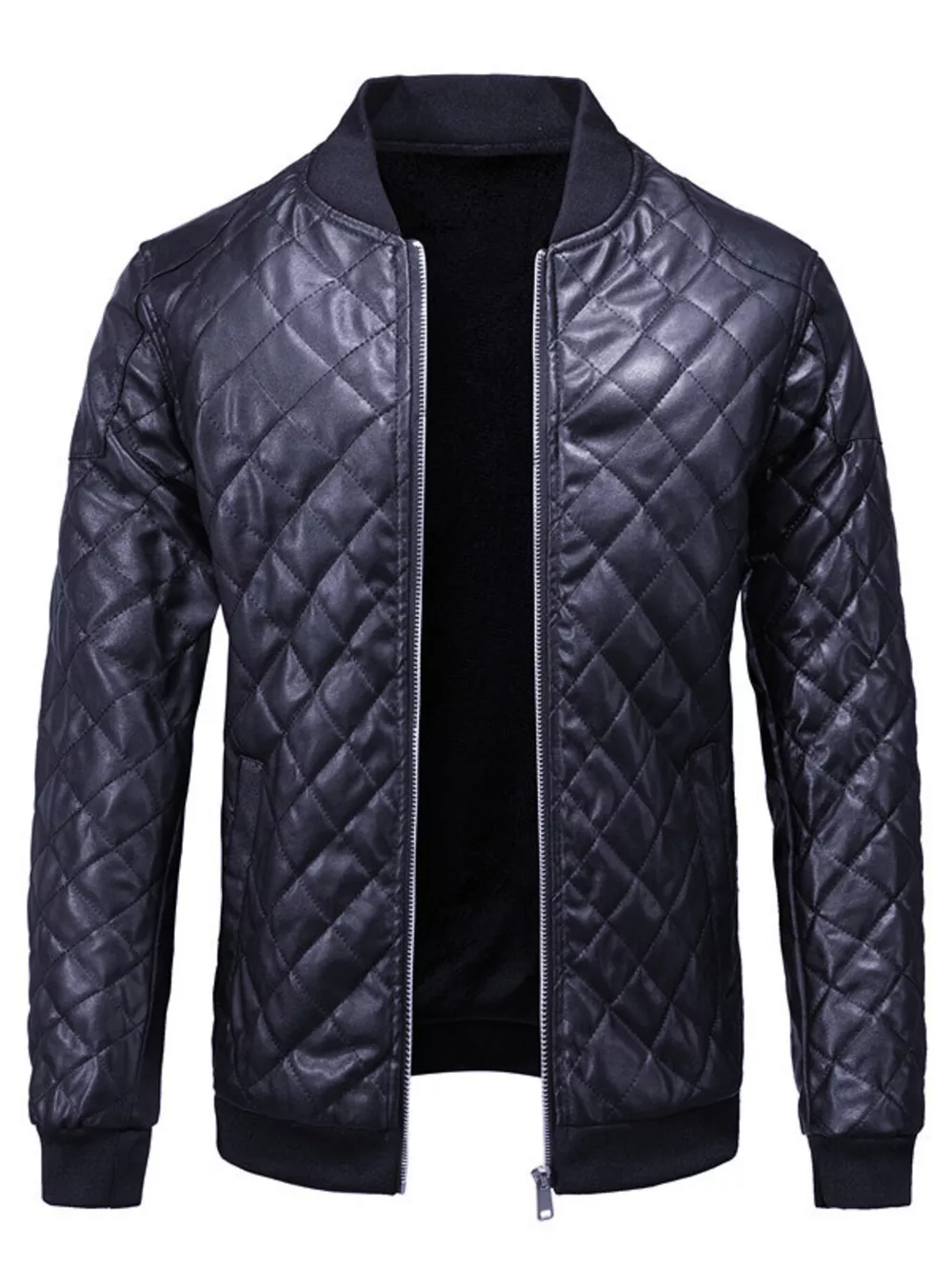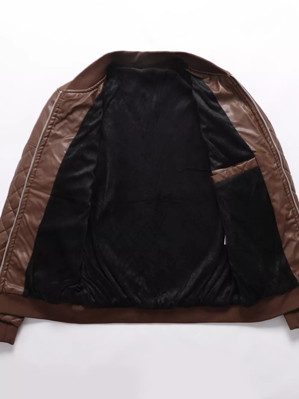Men's Plus Size Quilted Faux Leather Bomber Jacket