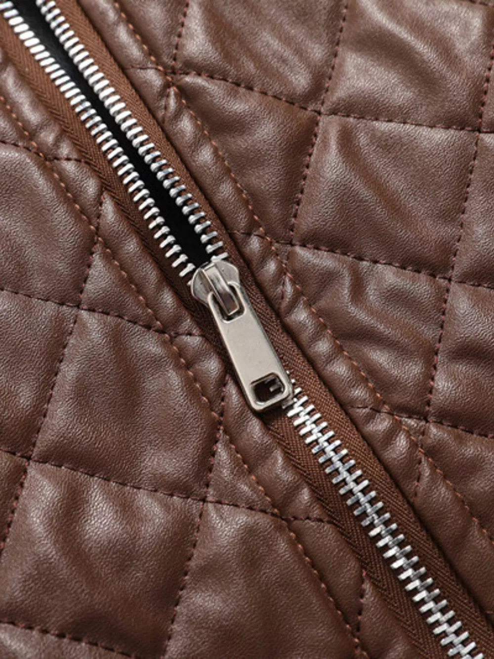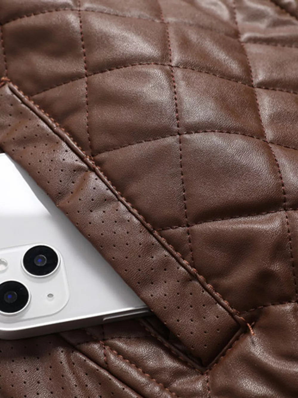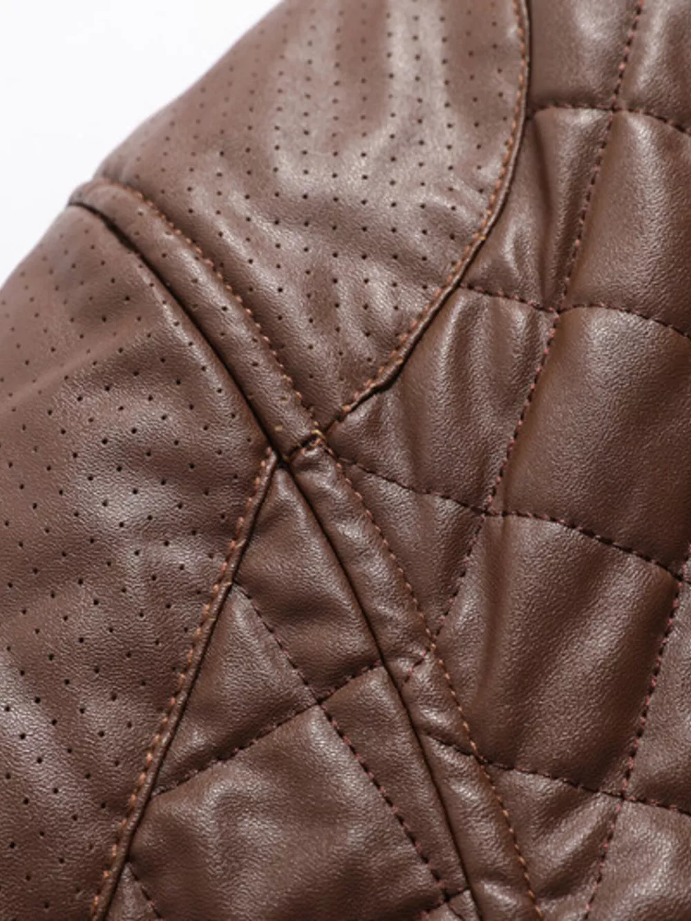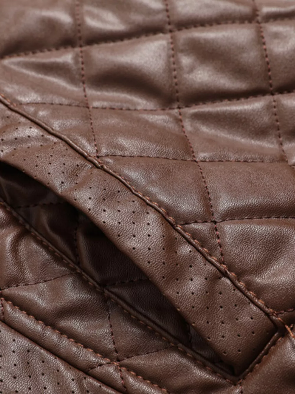Men's Plus Size Quilted Faux Leather Bomber Jacket