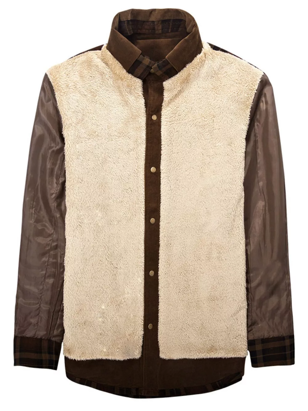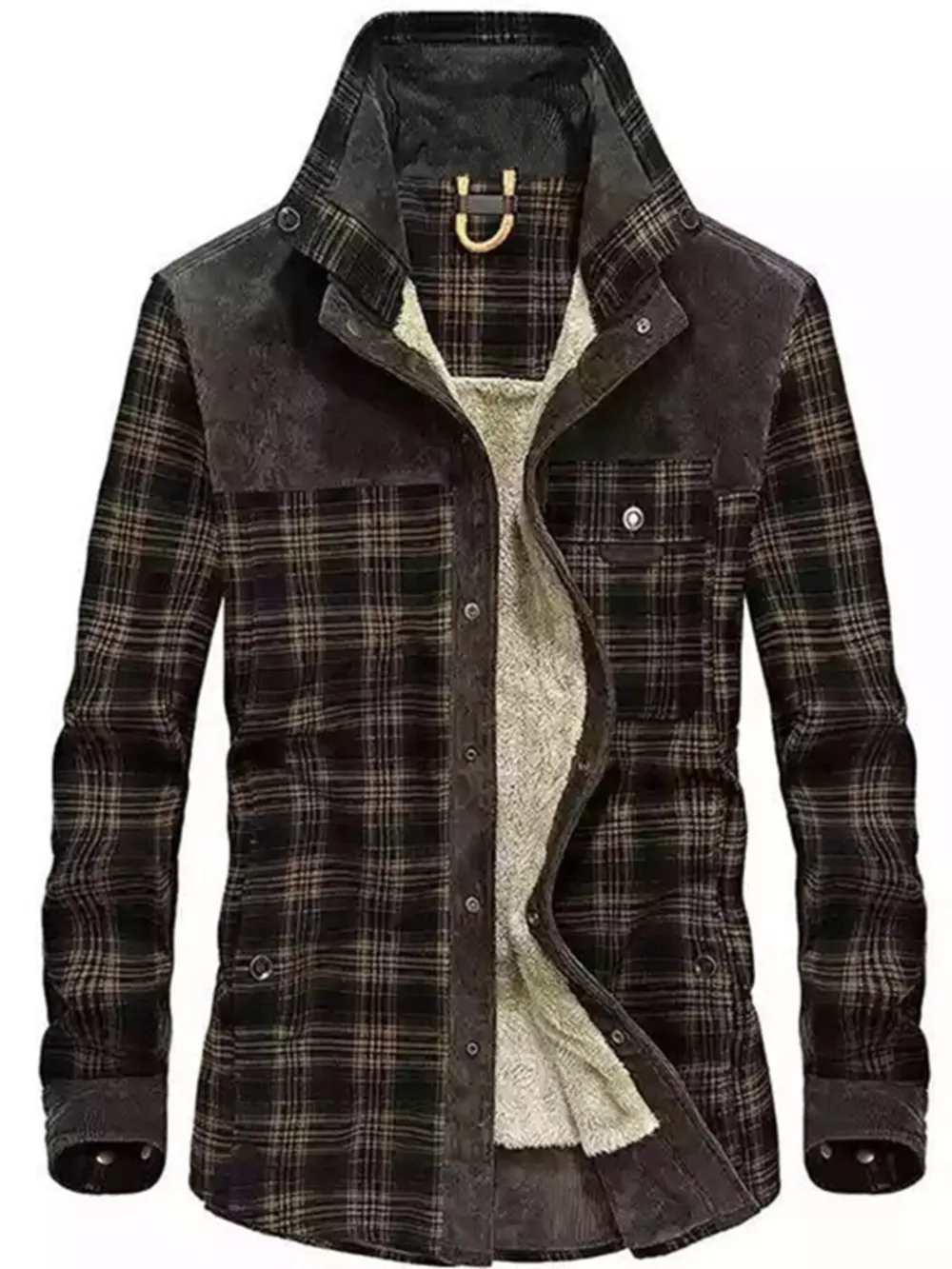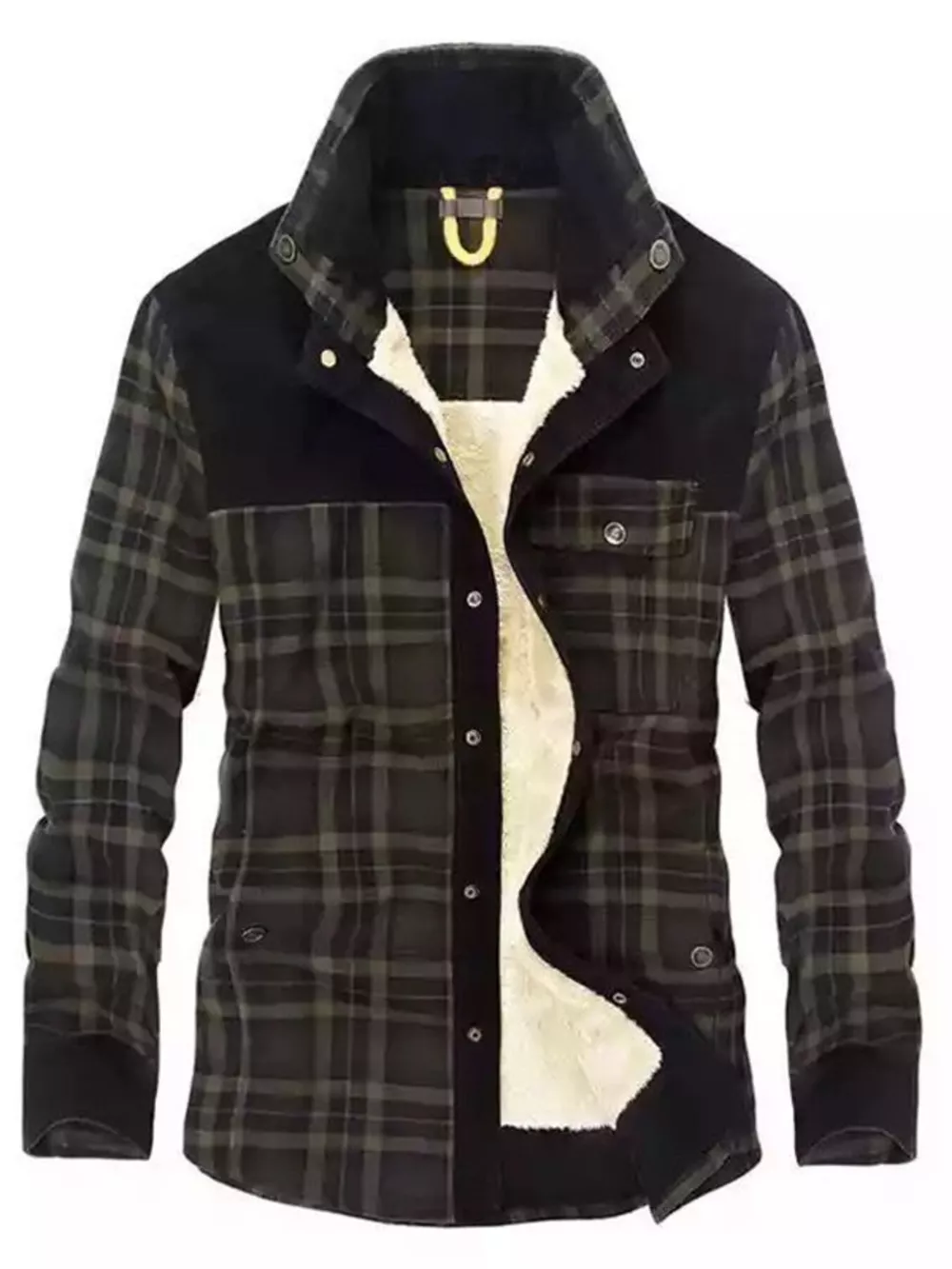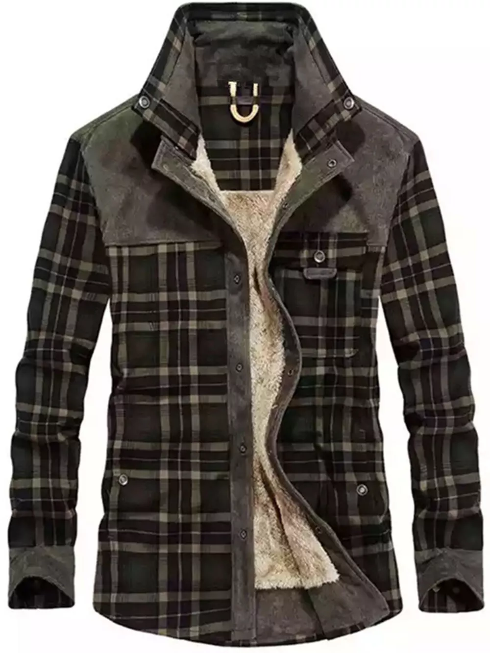 Men's Full Size Plaid Fleece Lined Snap Down Jacket Plus Size