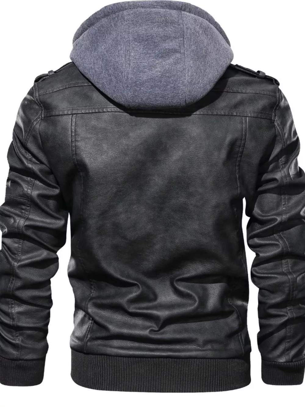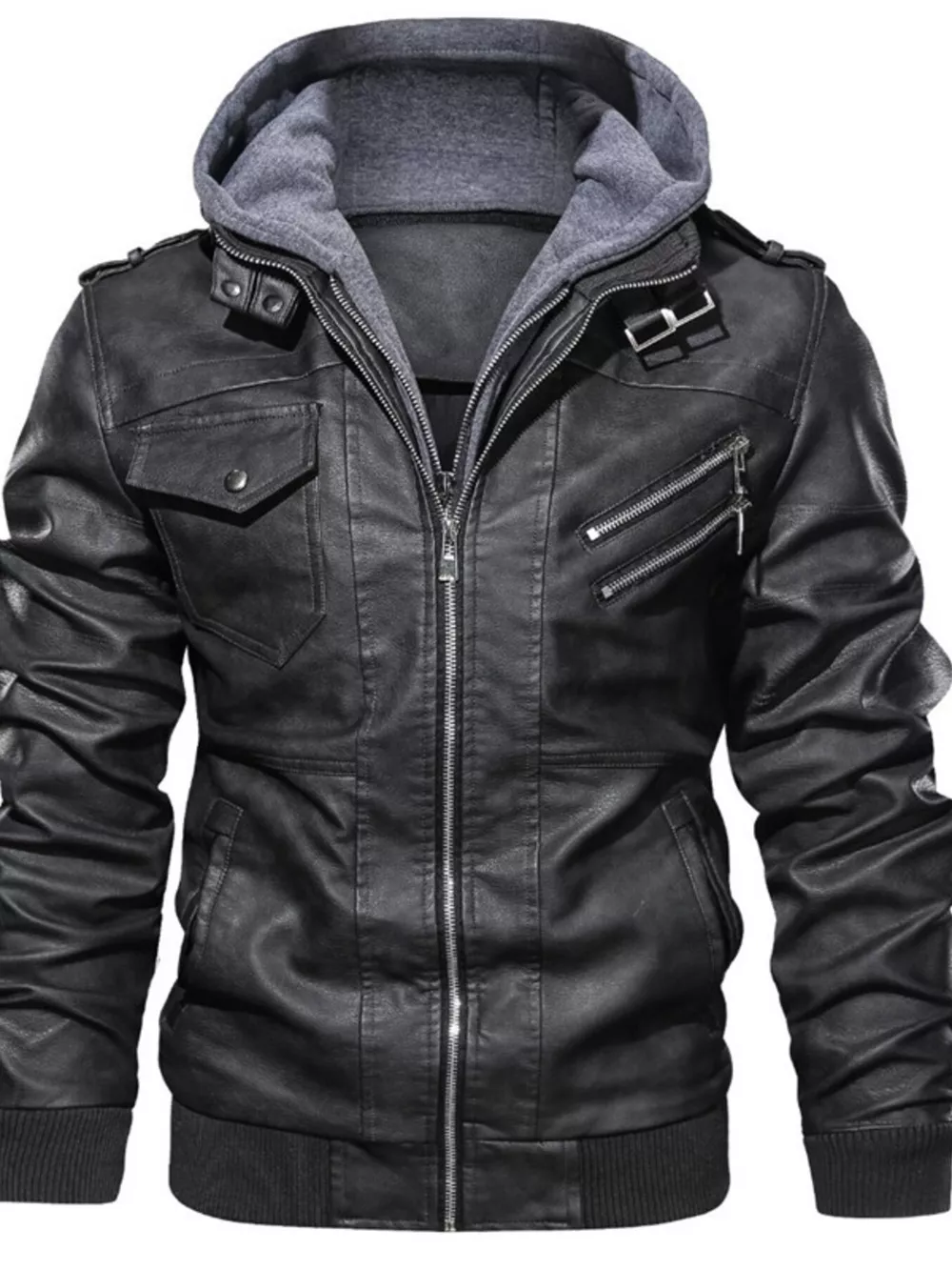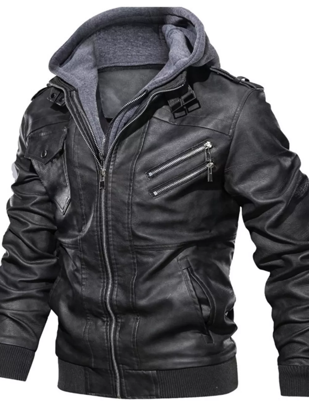 Men's Full Size Hooded Faux Leather Moto Jacket Plus Size