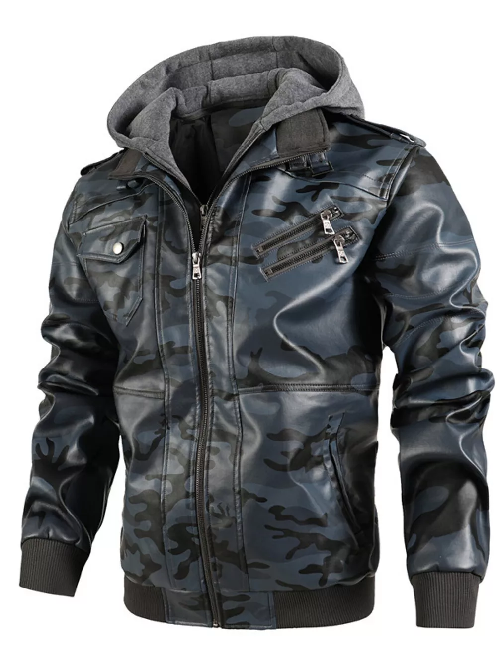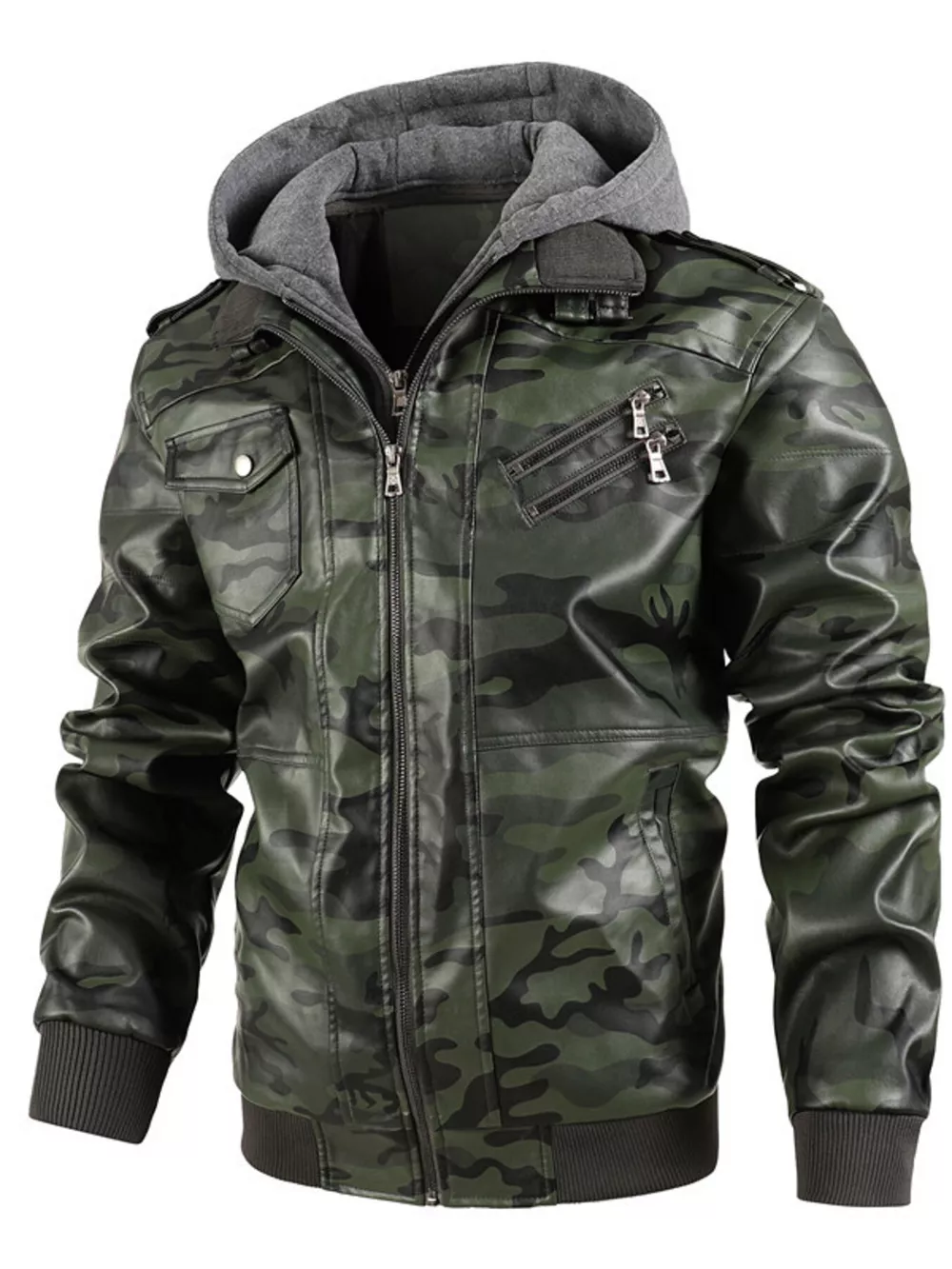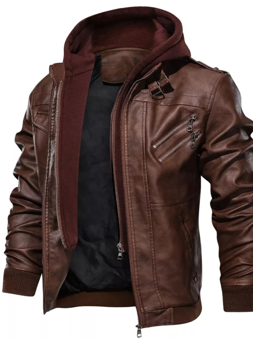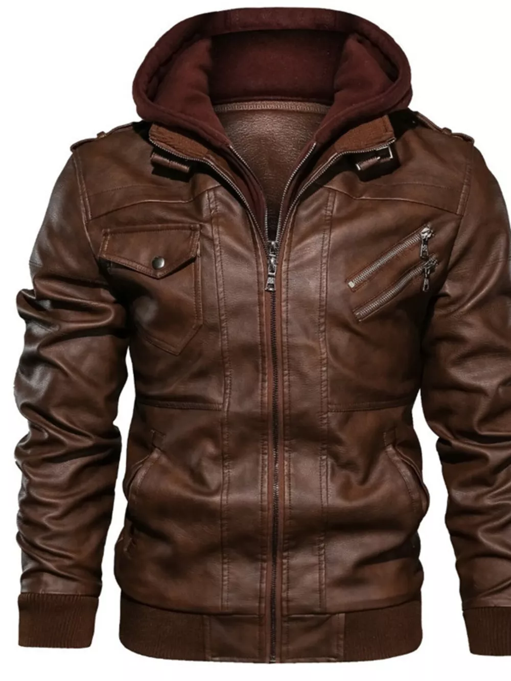 Men's Full Size Hooded Faux Leather Moto Jacket Plus Size